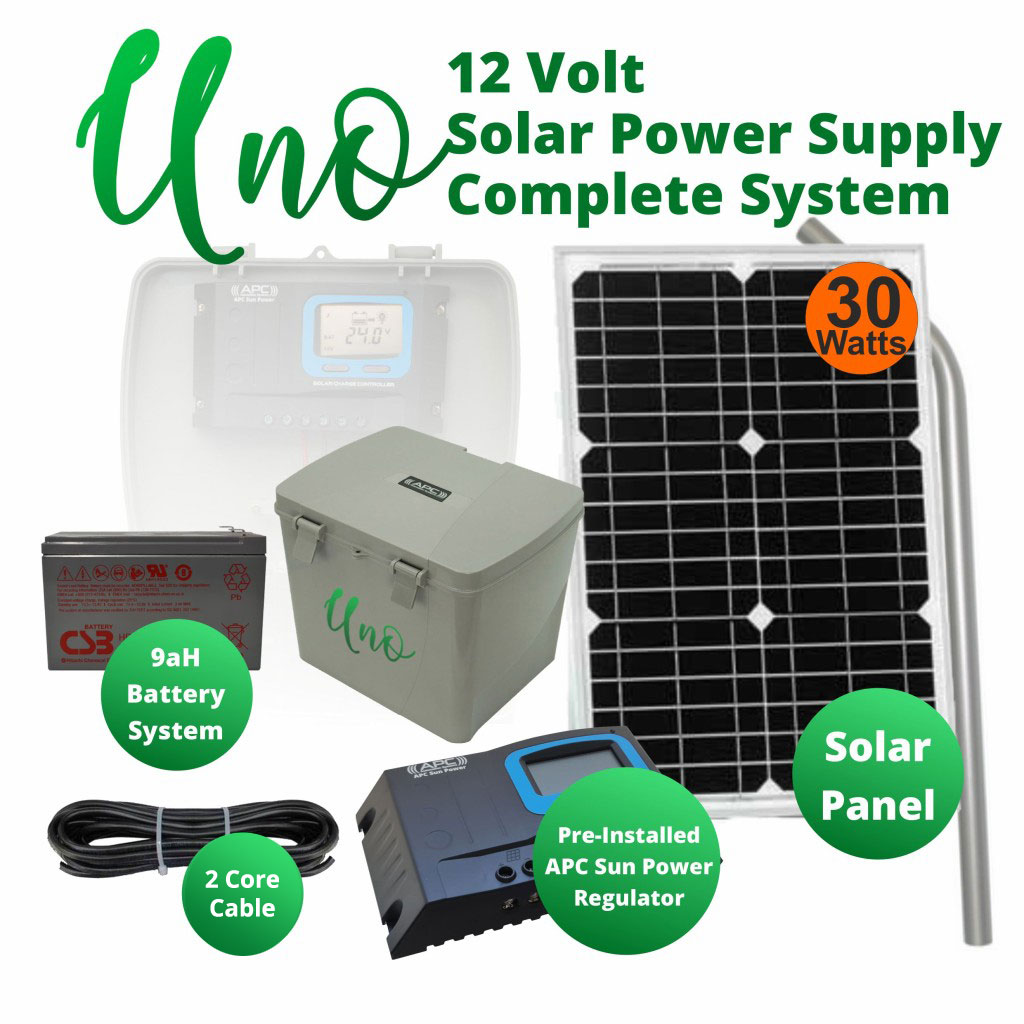 Solar Power Supply System with 9aH Battery and 30 Watts Solar Panel for 12 Volt Gate Opener Systems