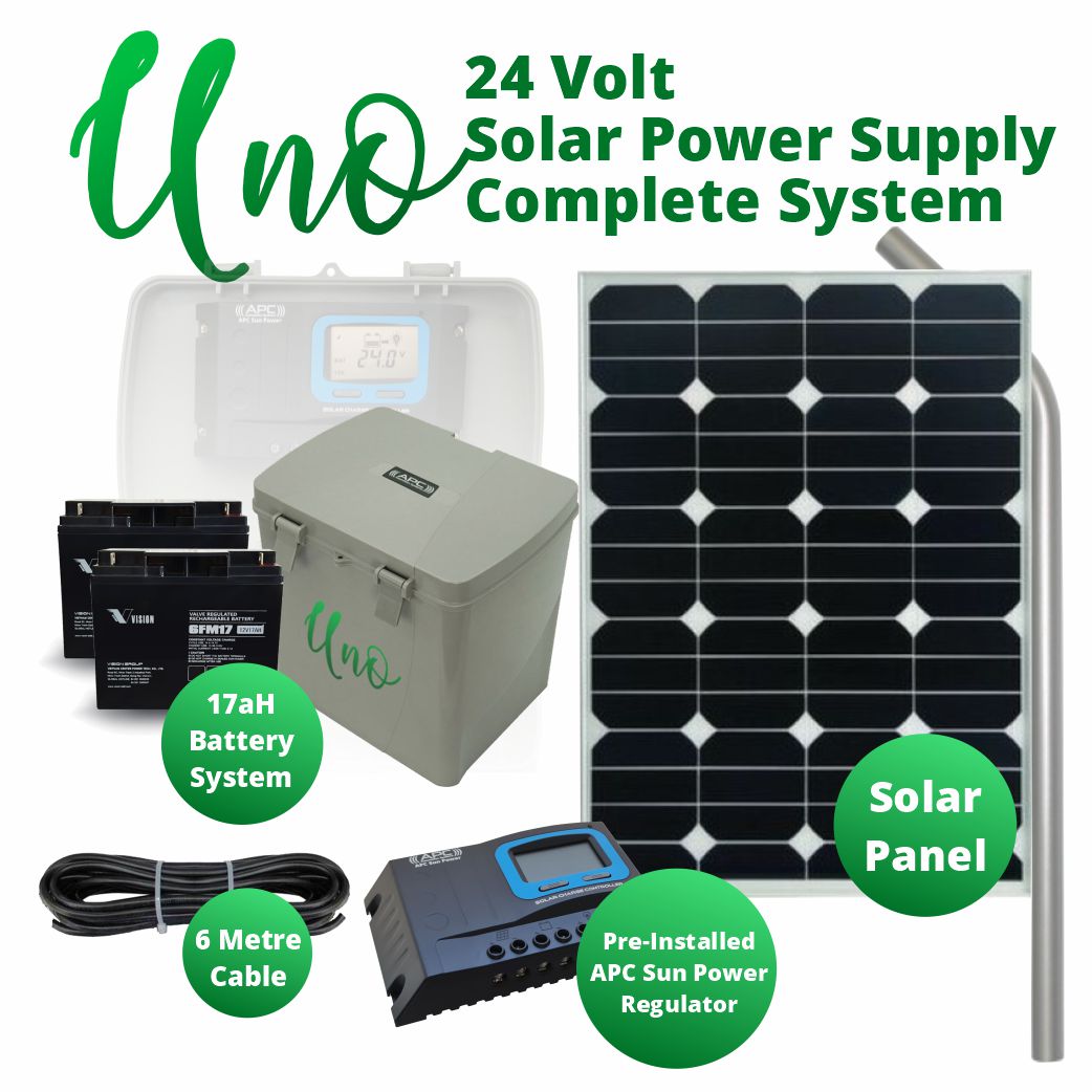 The APC Uno is an articulate all-in-one design allowing for the clean and secure housing of the APC Sun Power Solar Regulator and multiple batteries. The housing can fit up to 2x 9aH batteries (Uno Box), 2x 17aH batteries(Uno Large Box), and 1x 33aH battery(Uno Large Box). For 33aH batteries, a Master Uno Large Box and Slave Uno Large Box are required; see details below.