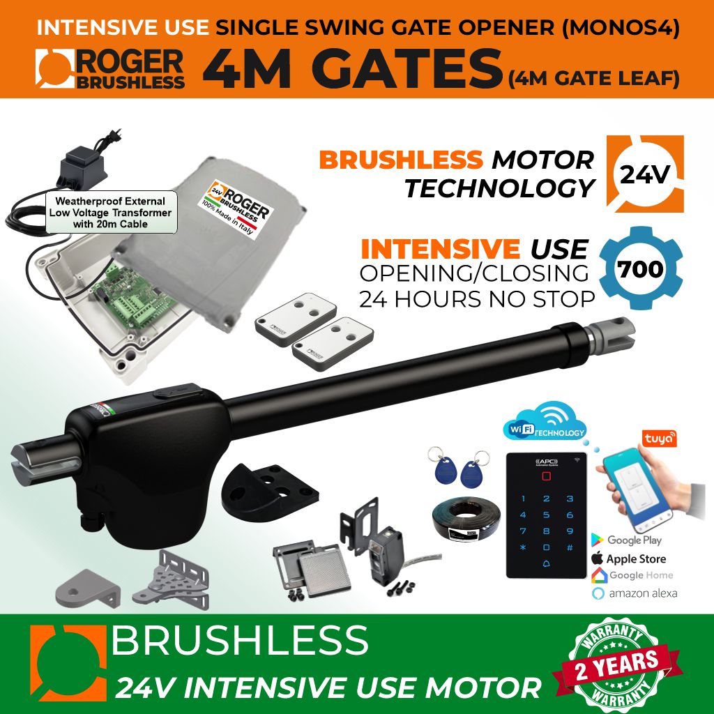 Roger Technology 24V Super Intensive Use Brushless Gate Automotion LV System | Max. 4m/450kg Opening Driveway Gate Leaf
