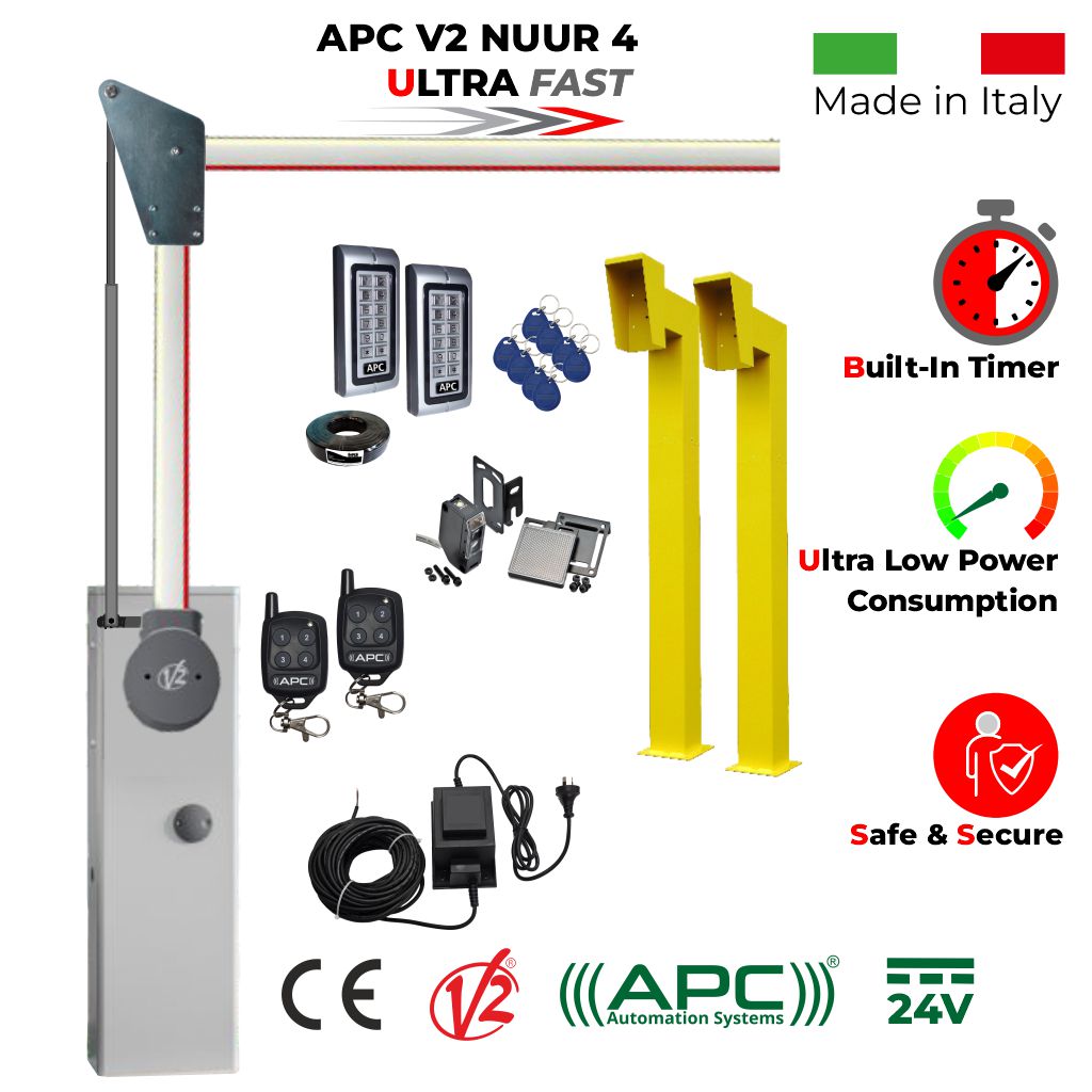 Boom Barrier / Boom Gate / Parking Barrier, Car Parking Access Control APC V2 NUUR4, Universal Boom Gate Ultra High-Speed 24V DC, 4 Meter Barrier Made in Italy