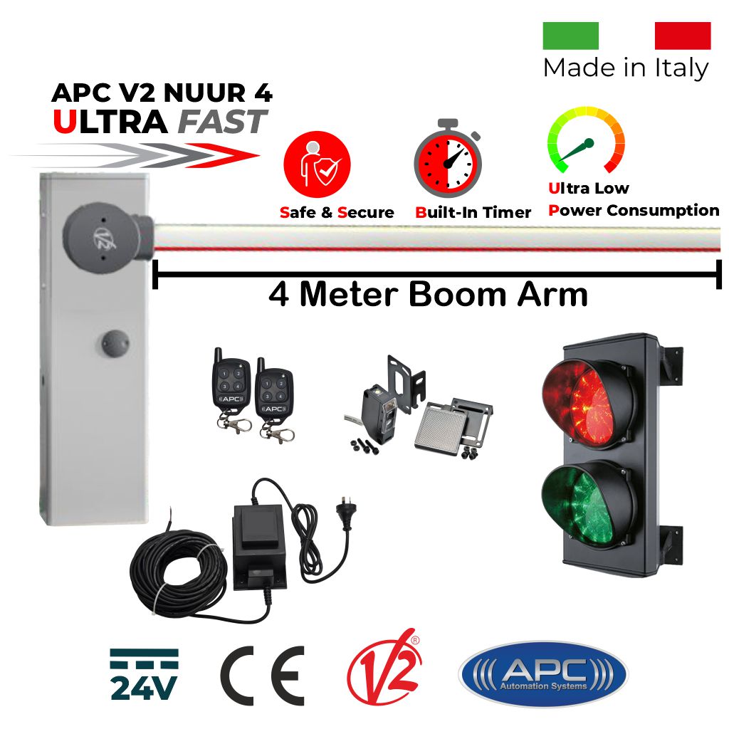 The APC V2 NUUR Universal Boom Gate Operator represents the pinnacle of Italian engineering, designed specifically to meet the rigorous demands of Australian commercial and residential access control. Whether managing a busy corporate car park in City Centre (Sydney, Melbourne, Brisbane, Perth, Adelaide, Canberra, Hobart, etc.) or a remote solar-powered industrial site in Western Australia, or a farm across all of AU, the V2 NUUR delivers unmatched speed, reliability, and intelligence.