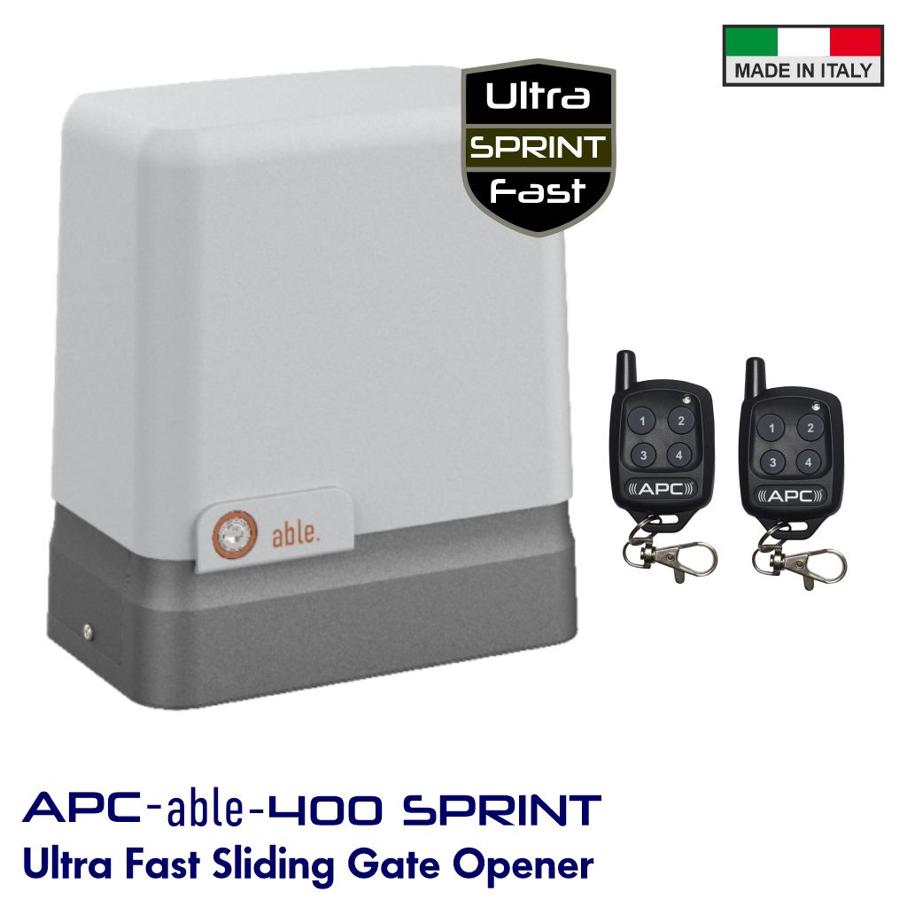 The APC Able 400SPRINT combines Italian engineering quality, high-speed performance, energy efficiency, and advanced safety features. Its programmable controls and easy installation make it one of the most user-friendly and reliable sliding gate motors available in Australia.