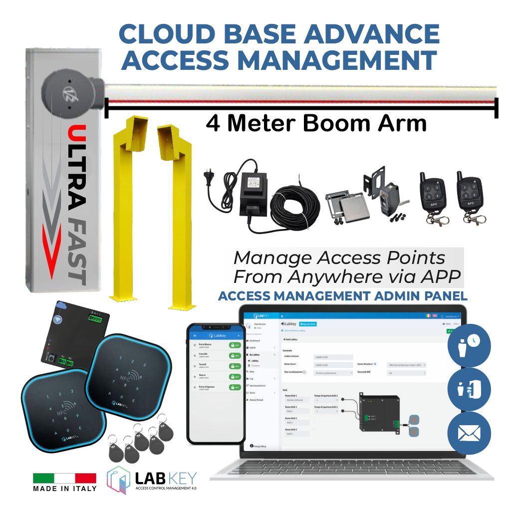 Boom Barrier / Boom Gate / Parking Barrier, Car Parking Access Control APC V2 NUUR4, Universal Boom Gate Ultra High-Speed 24V DC, 4 Meter Barrier Made in Italy
