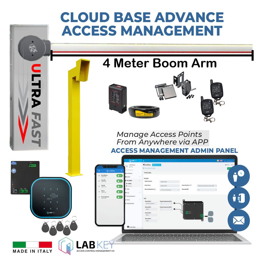 Boom Barrier / Boom Gate / Parking Barrier, Car Parking Access Control APC V2 NUUR4, Universal Boom Gate Ultra High-Speed 24V DC, 4 Meter Barrier Made in Italy