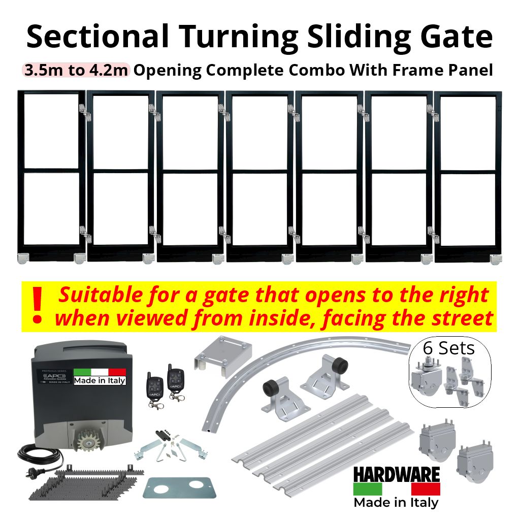 This Corner Turning Sliding Gate is configured for right-hand side opening only — meaning the sliding gate opens to the right when viewed from inside, facing the street. The hardware, track layout, and motor orientation are optimised for this direction to ensure smooth operation and reliable performance.