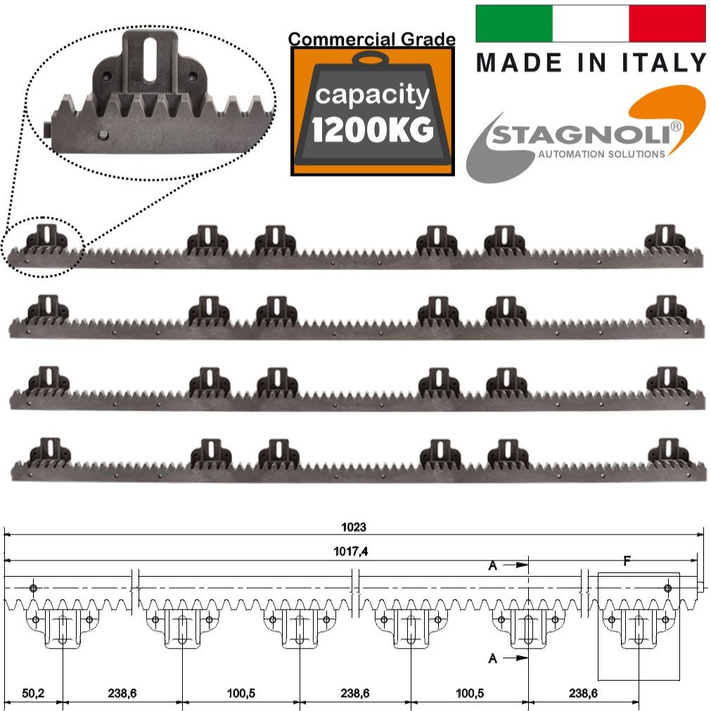 4m Nylon Coated Gear Rack Kit (4x1020mm) with Keyed Interlocking | 1200 KG Capacity High Strength Sliding Gate Hardware