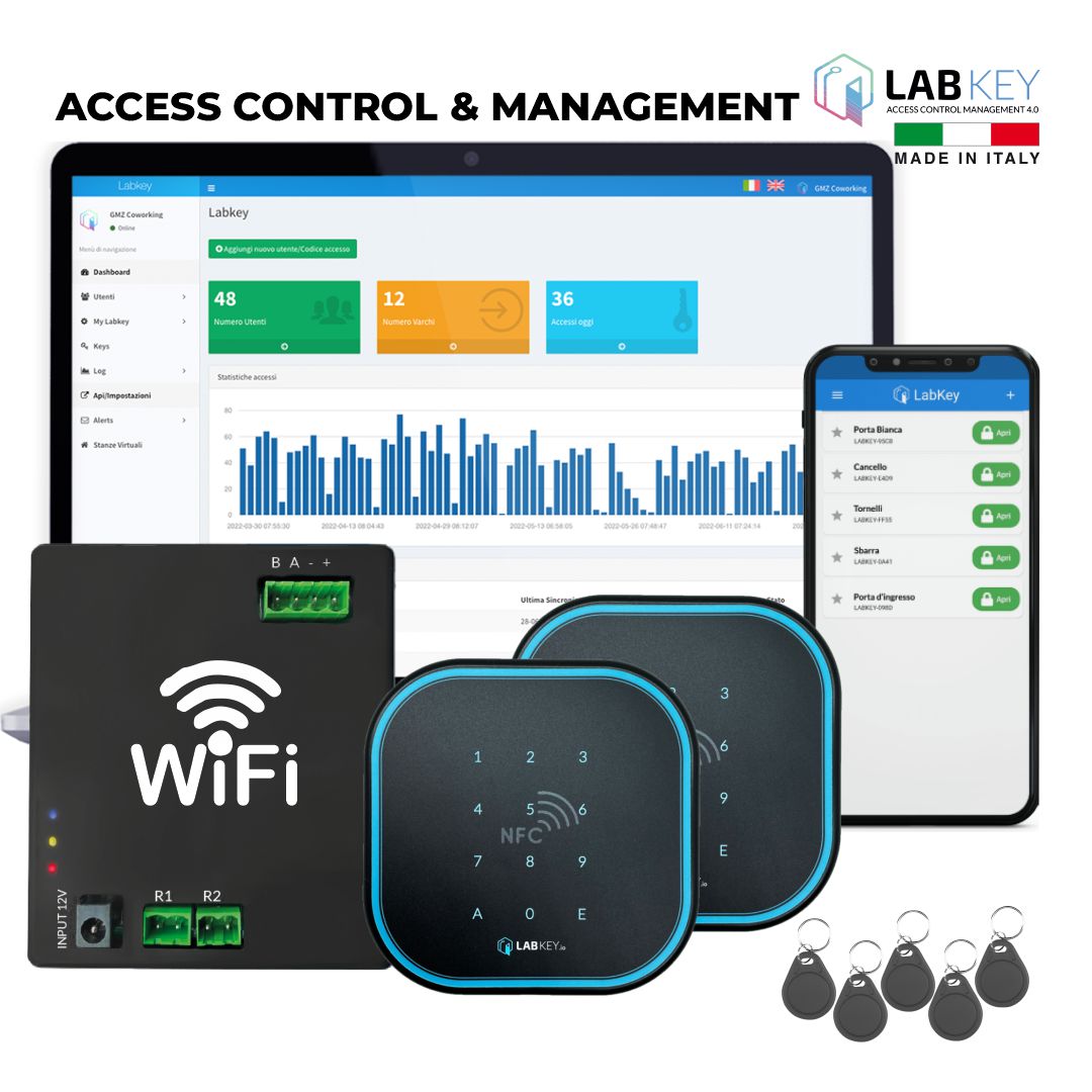 The LabKey Wi-Fi Control Unit delivers a next-generation access management system. Equipped with dual relays, it can manage two access points and support up to four connected devices, offering exceptional flexibility for modern security needs. Paired with two LabKey Keypad + NFC Readers, this system becomes a complete advanced access control solution. With secure cloud-based software, administrators can manage users, schedules, logs, and permissions from anywhere—making access control more straightforward, faster, and more reliable.