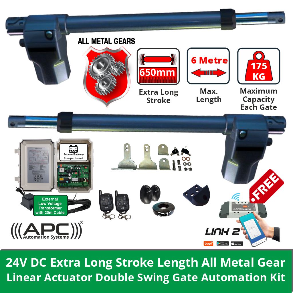 Electric Motor Gate Opener 24V System, 3 Meter/175KG Per Gate, 650mm Stroke, All Metal Gear