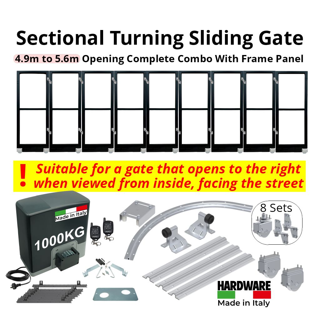 This Corner Turning Sliding Gate is configured for right-hand side opening only — meaning the sliding gate opens to the right when viewed from inside, facing the street. The hardware, track layout, and motor orientation are optimised for this direction to ensure smooth operation and reliable performance.
