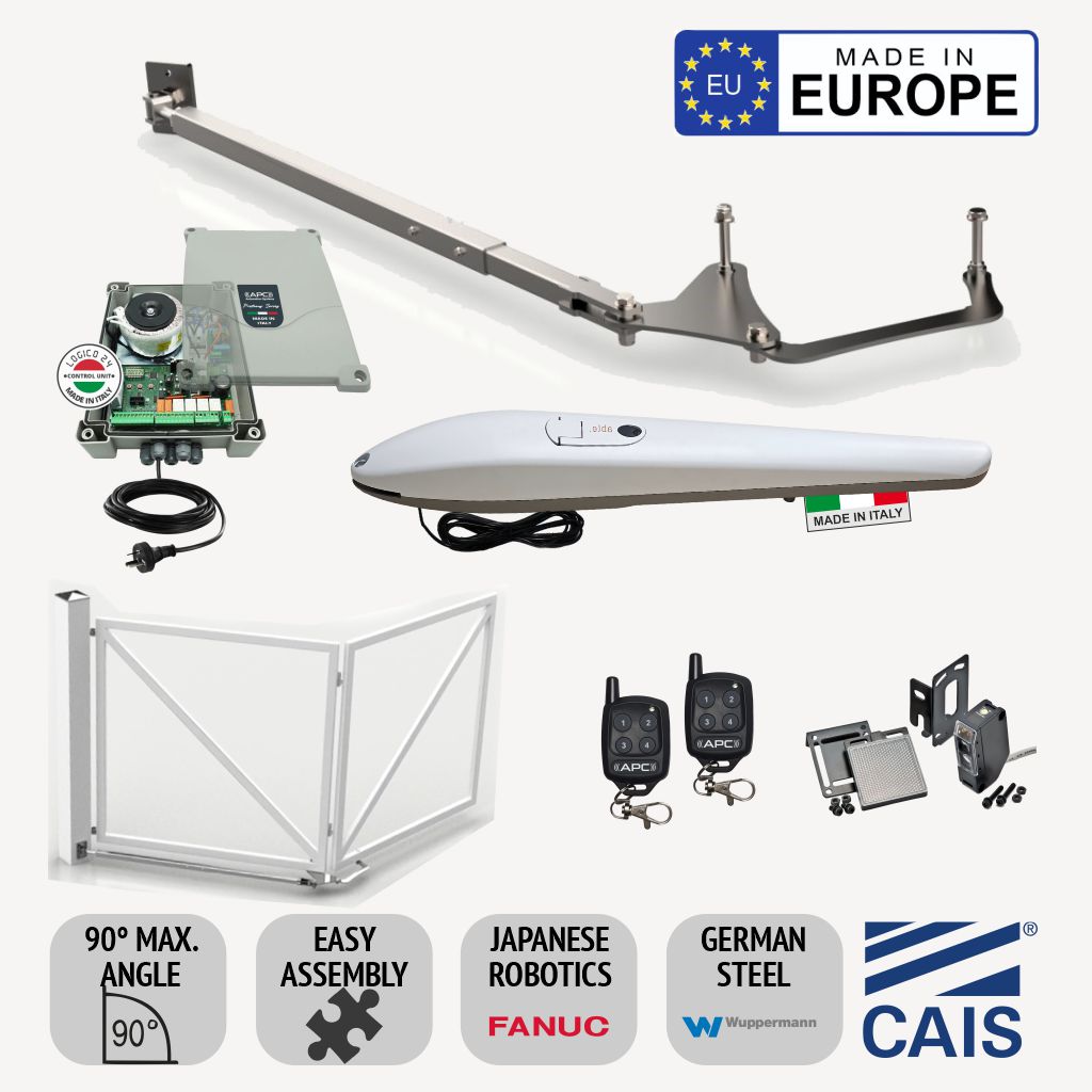 Packing a punch, the "APC Able 3000" system can deliver 2000N of thrust to operate gates up to 600kg or 3m in length for each gate. With a built-in adjustable mechanical stop for opening (an optional add-on mechanical closing stop), the system offers versatile stopping positions.