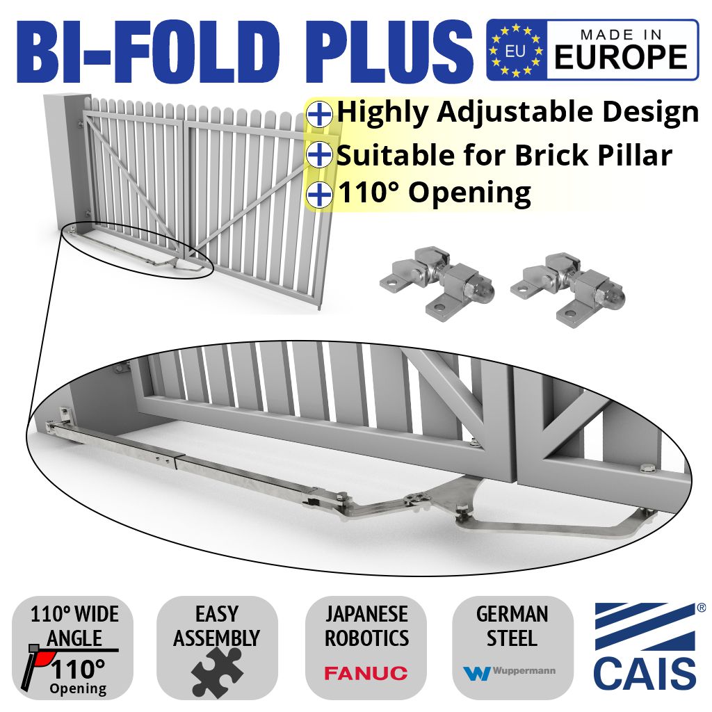 In the past, Swing Bi-Folding gates were originally very noisy, using steel rails and wheels, which can be very noisy compared to the New CAIS TWIN DRIVE PLUS Trackless Bi-Folding System.
