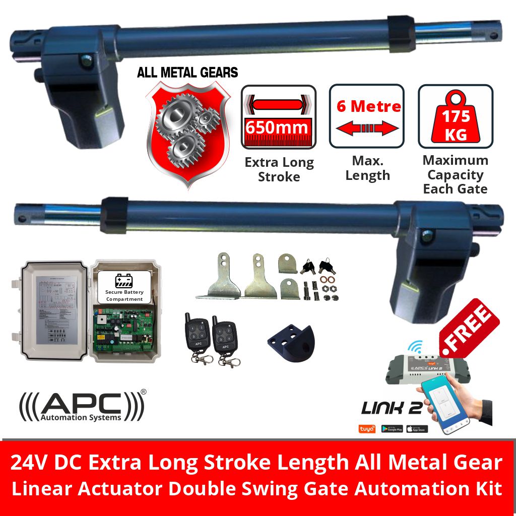 Electric Motor Gate Opener 24V System, 3 Meter/175KG Per Gate, 650mm Stroke, All Metal Gear