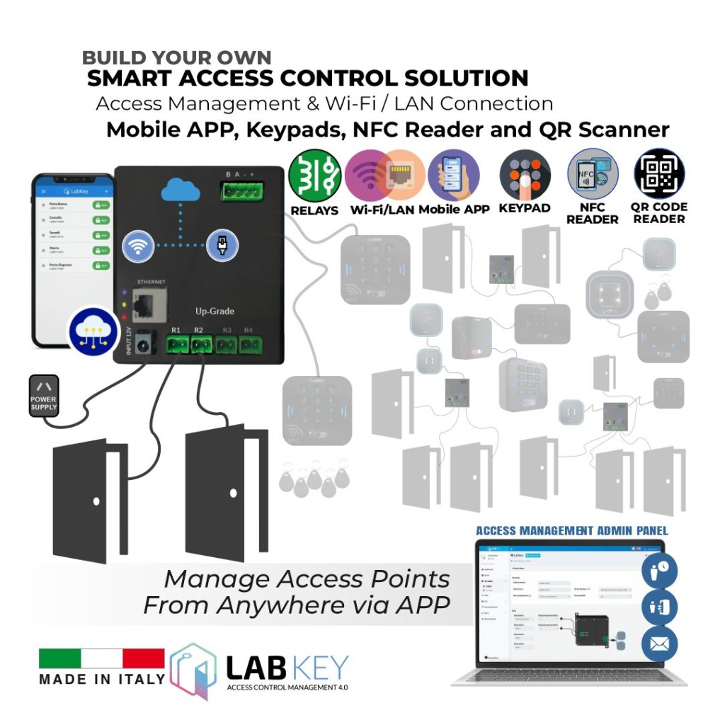 LabKey Basic Control Units: For access control of up to 2 gates, cloud management, and connection via Wi-Fi or LAN.
