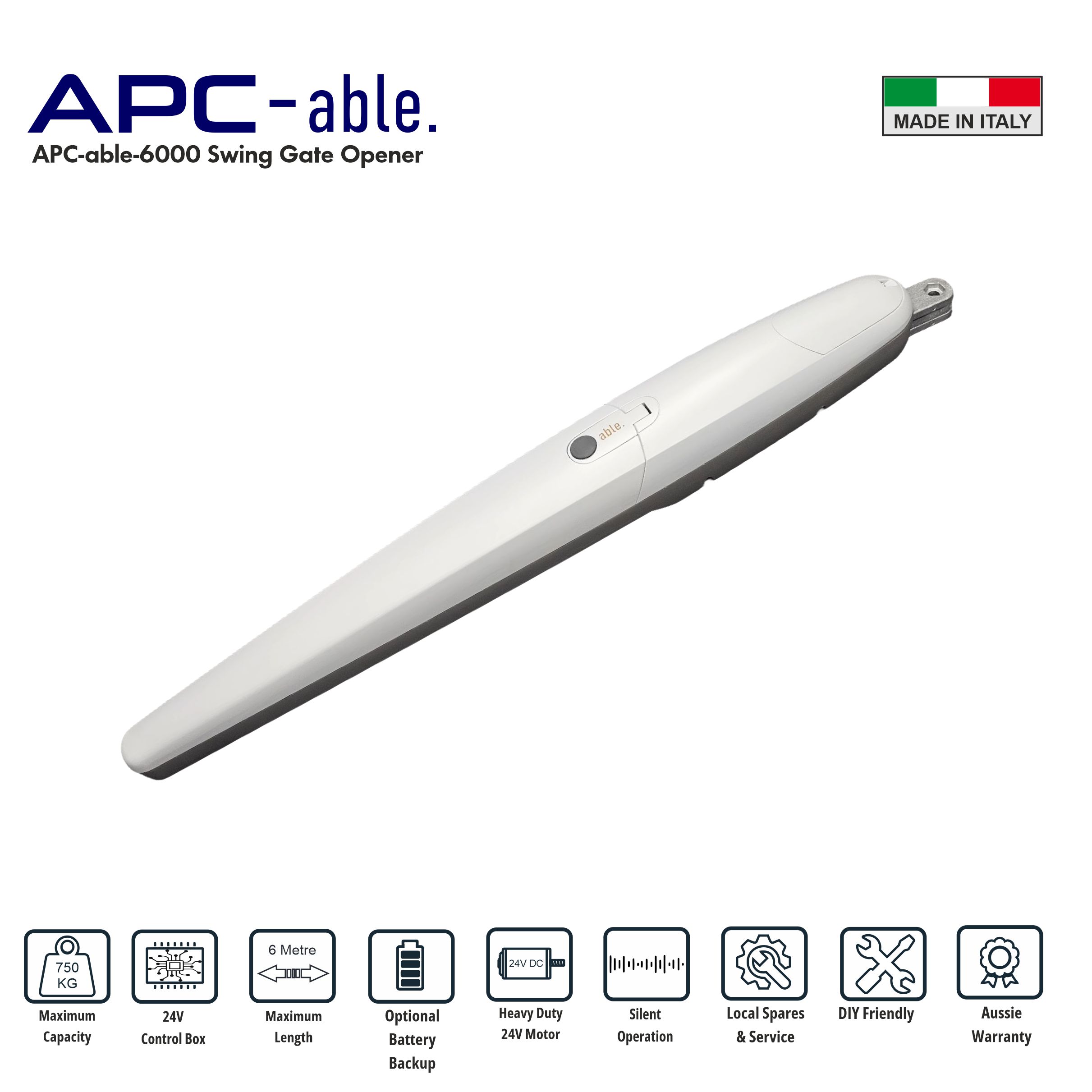24V Automatic Swing Gate Motor. "APC Able 6000" Electromechanical actuator for swing gates with each leaf up to 6m in length (for each gate).