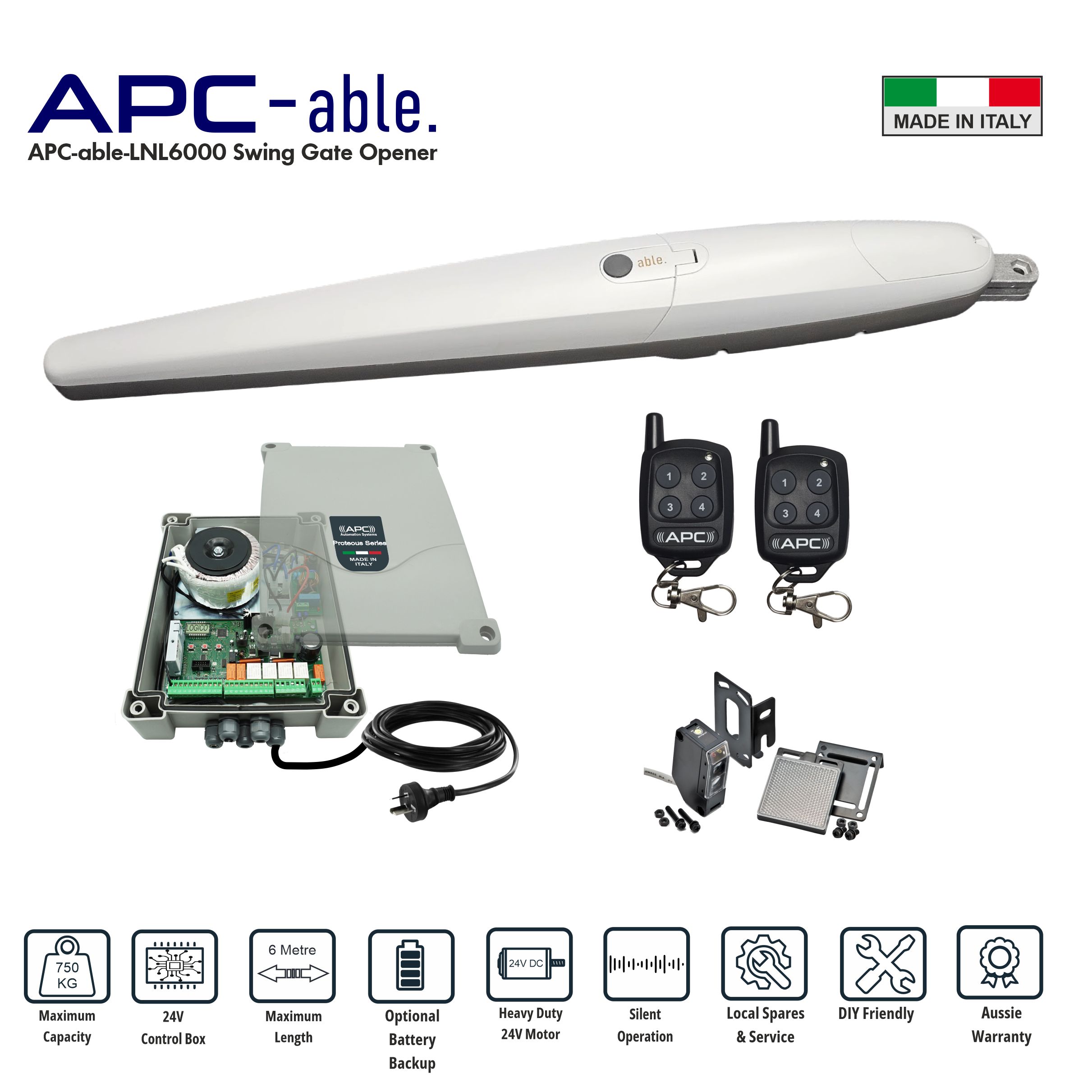 Super Duty APC ABLE 6000 Gate Automation Kit. 6M/750Kg Capacity Driveway Gate Opener for Single Swing Gates
