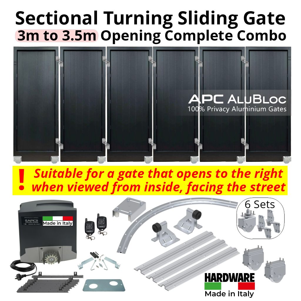 This Corner Turning Sliding Gate is configured for right-hand side opening only — meaning the sliding gate opens to the right when viewed from inside, facing the street. The hardware, track layout, and motor orientation are optimised for this direction to ensure smooth operation and reliable performance.