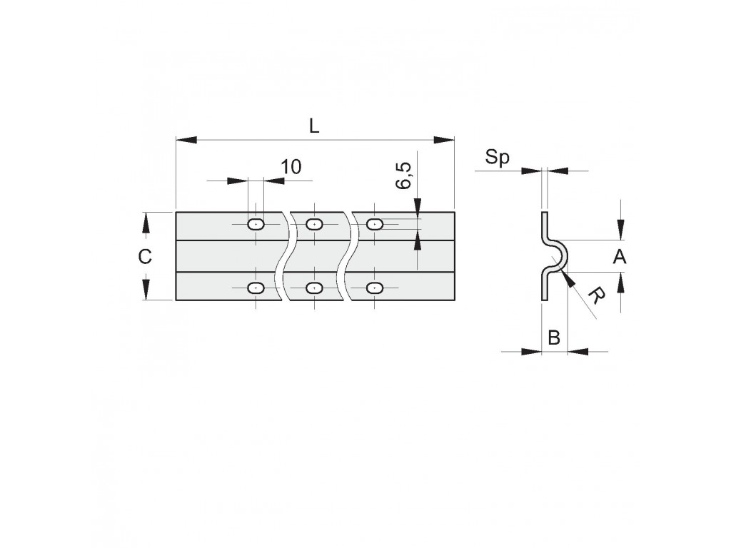 | A(mm) | B(mm) | C(mm) | R(mm) | Sp(mm) | L(m) |