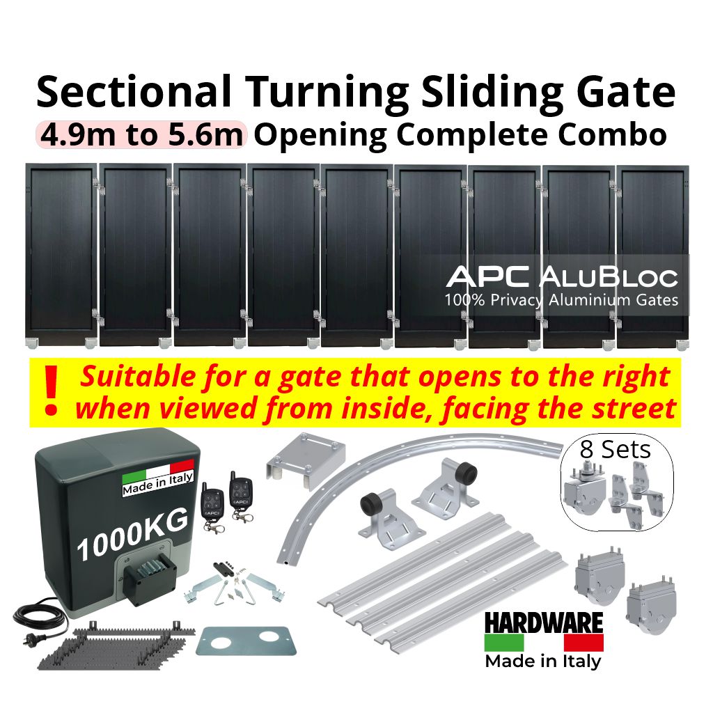 This Corner Turning Sliding Gate is configured for right-hand side opening only — meaning the sliding gate opens to the right when viewed from inside, facing the street. The hardware, track layout, and motor orientation are optimised for this direction to ensure smooth operation and reliable performance.