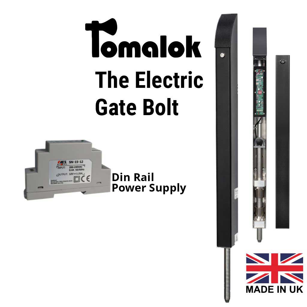 The Electric Gate Drop Bolt Lock with Din Rail Power Supply - Tomalok TL-B-150-DIN