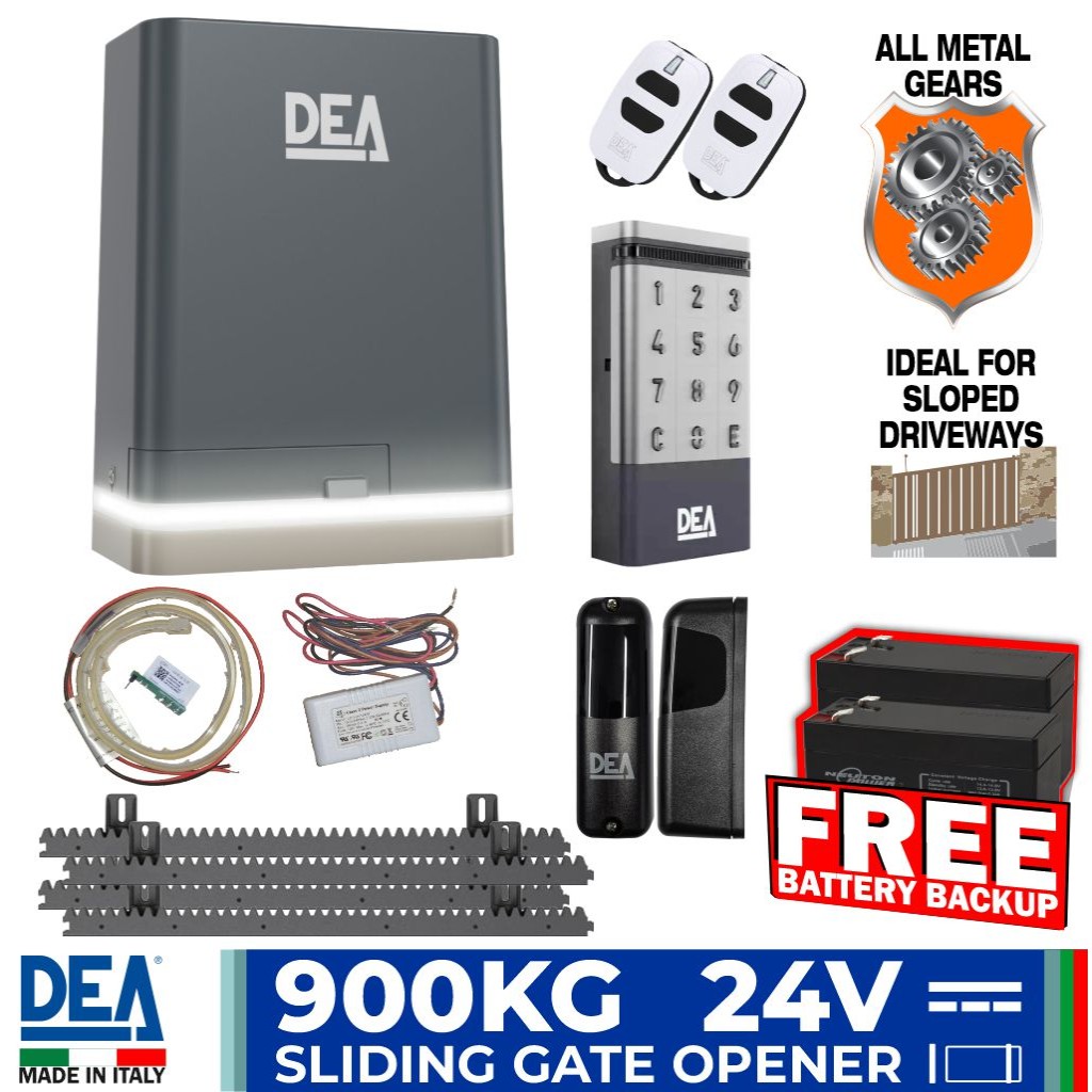 DEA 900kg Sliding Gate Opener with Wireless Keypad, LED/X lighting and Wireless Safety Sensor Kit | Italian Made by DEA.