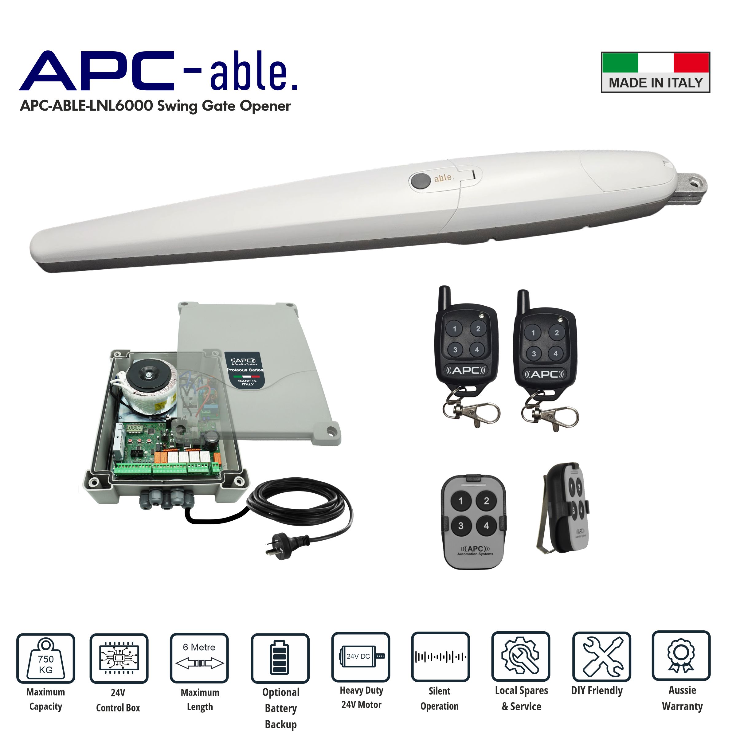 Super Duty APC ABLE 6000 Gate Automation Kit. 6M/750Kg Capacity Driveway Gate Opener for Single Swing Gates