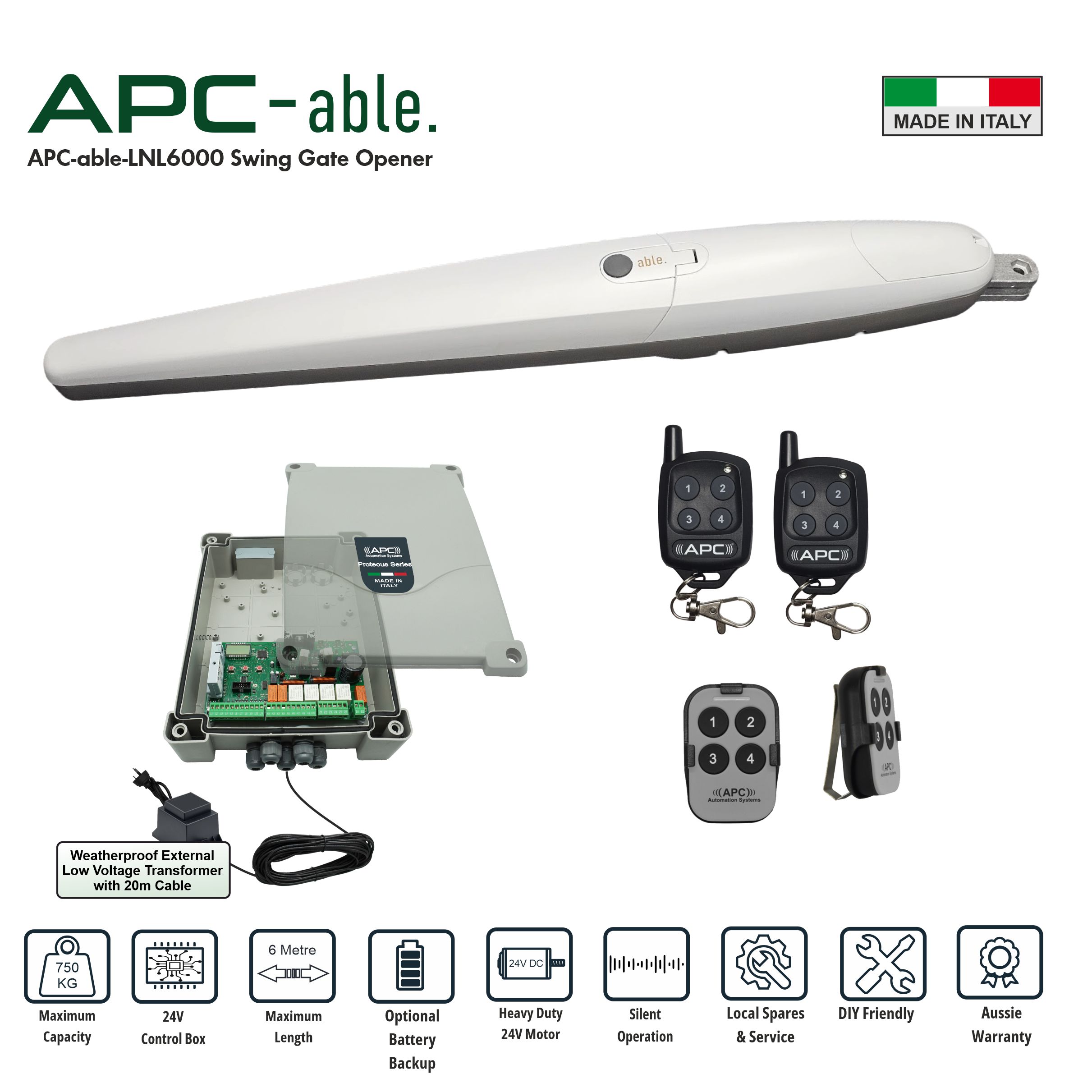 Super Duty APC ABLE 6000 Gate Automation Kit. 6M/750Kg Capacity Driveway Gate Opener for Single Swing Gates