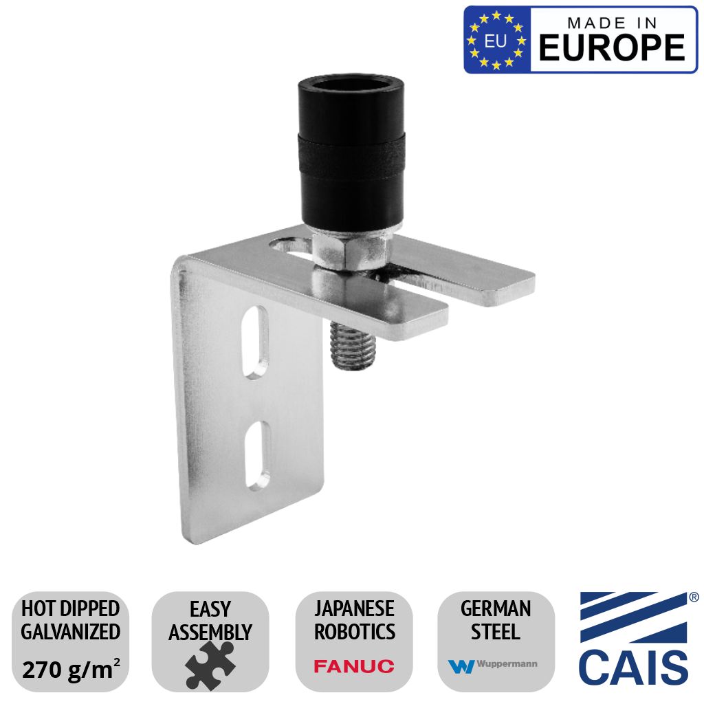 Galvanised steel single roller guide plate for cantilever sliding gate.