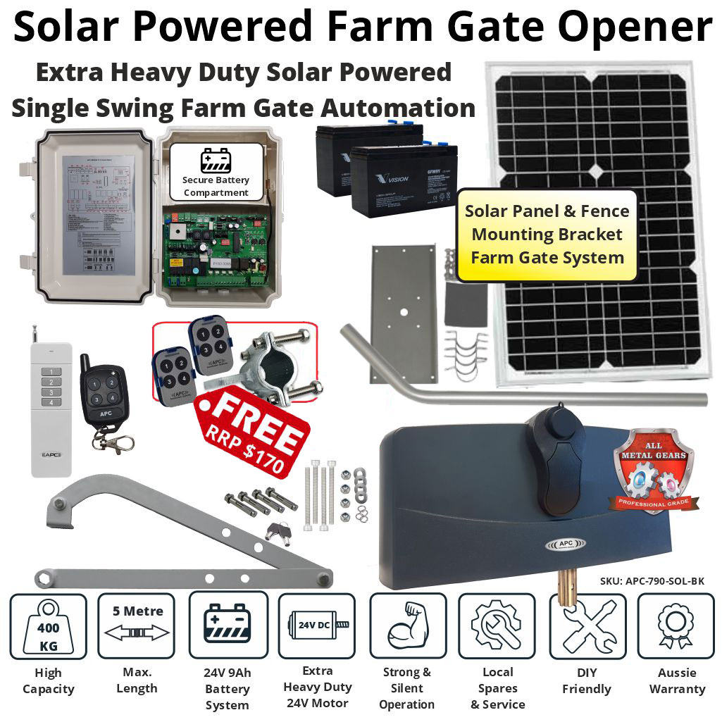 This Solar Electric Farm Gate Opener Kit Comes with TWO FREE Sunvisor Remote Control and Farm Gate Bracket(RRP$170)