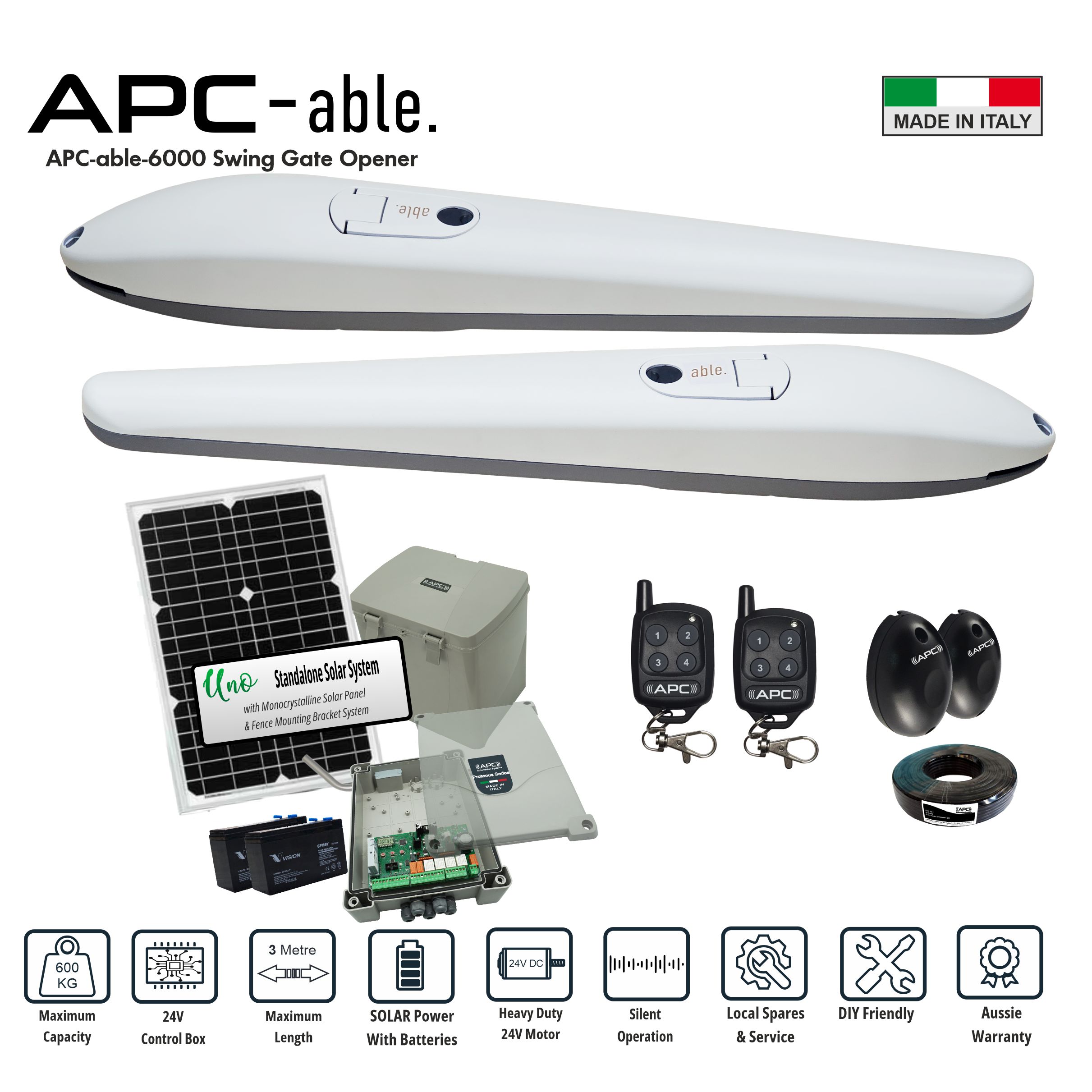 24V Automatic Double Swing Gate Motor. "APC Able 6000" Electromechanical actuator for swing gates with each leaf up to 3m in length (for each gate).