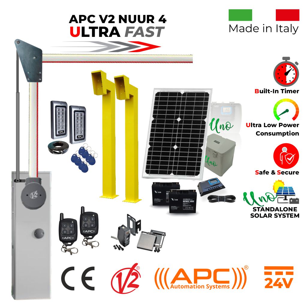 The APC V2 NUUR Universal Boom Gate Operator represents the pinnacle of Italian engineering, designed specifically to meet the rigorous demands of Australian commercial and residential access control. Whether managing a busy corporate car park in City Centre (Sydney, Melbourne, Brisbane, Perth, Adelaide, Canberra, Hobart, etc.) or a remote solar-powered industrial site in Western Australia, or a farm across all of AU, the V2 NUUR delivers unmatched speed, reliability, and intelligence.