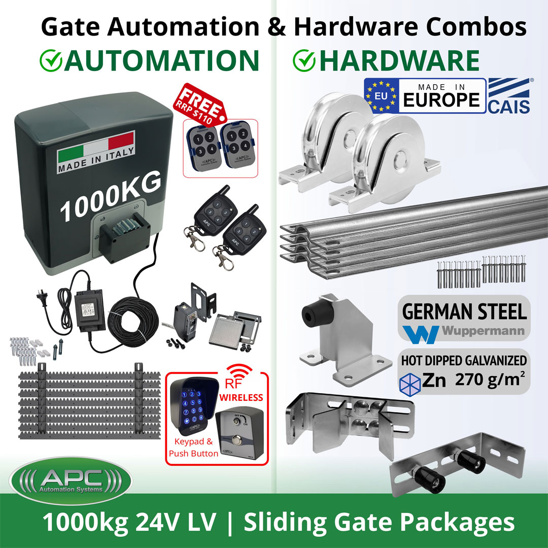 Complete Sliding Gate Opener and Hardware Kit, Italian Made Super Duty Sliding Gate Motor, 1000 KG / 10 Metre Capacity
