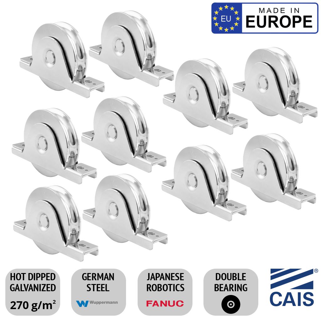 10x 88mm Dual Bearing U Groove 280Kg Per Wheel Weight Capacity, Recess Mount CAIS WSO Steel Sliding Gates Wheels