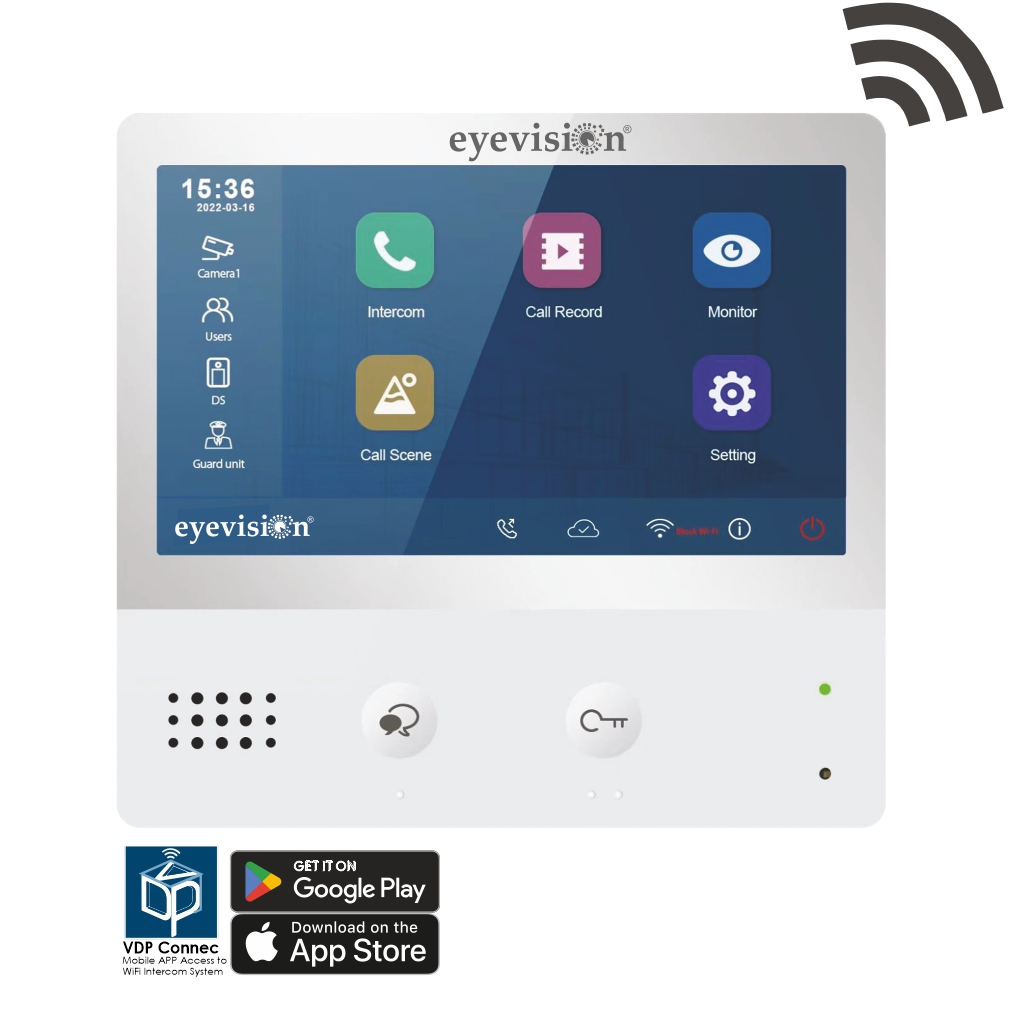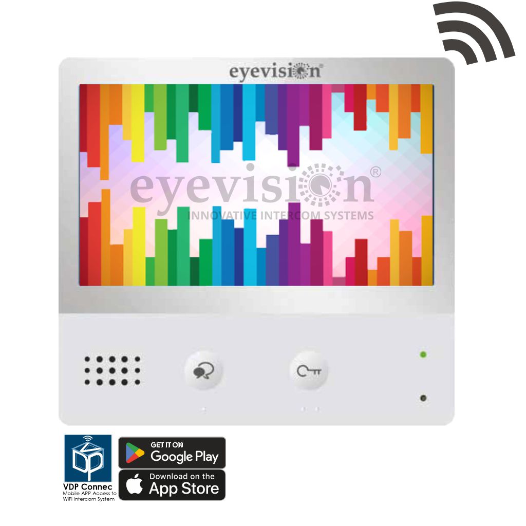 Two Wire WIFI Intercom Monitor, 7" Touch Screen, Compatible with all eyevison 2 Wire Systems