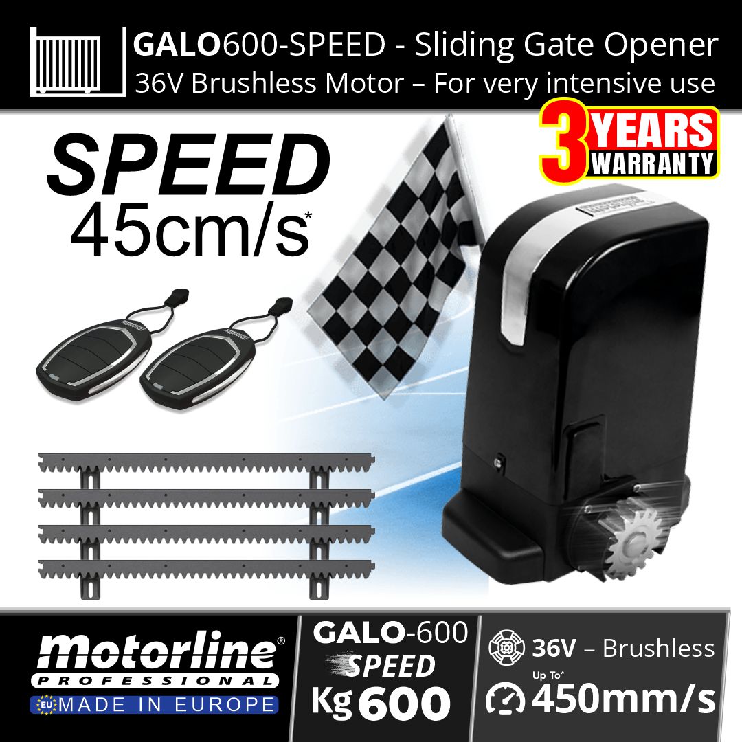 Ultra-Fast Sliding Gate Opener 36V Brushless Motor with Magnetic Limits | 600kg Capacity | European Made by Motorline