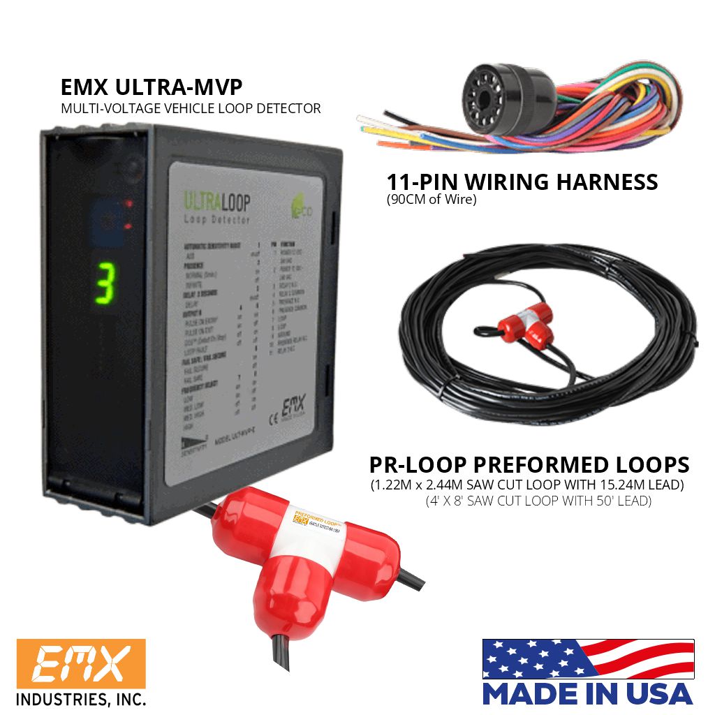 The EMX ULTRA-MVP multi-voltage vehicle loop detector combines small size with a 12VDC to 240VAC input range. Reduce inventory costs by stocking and transporting just one universal unit.