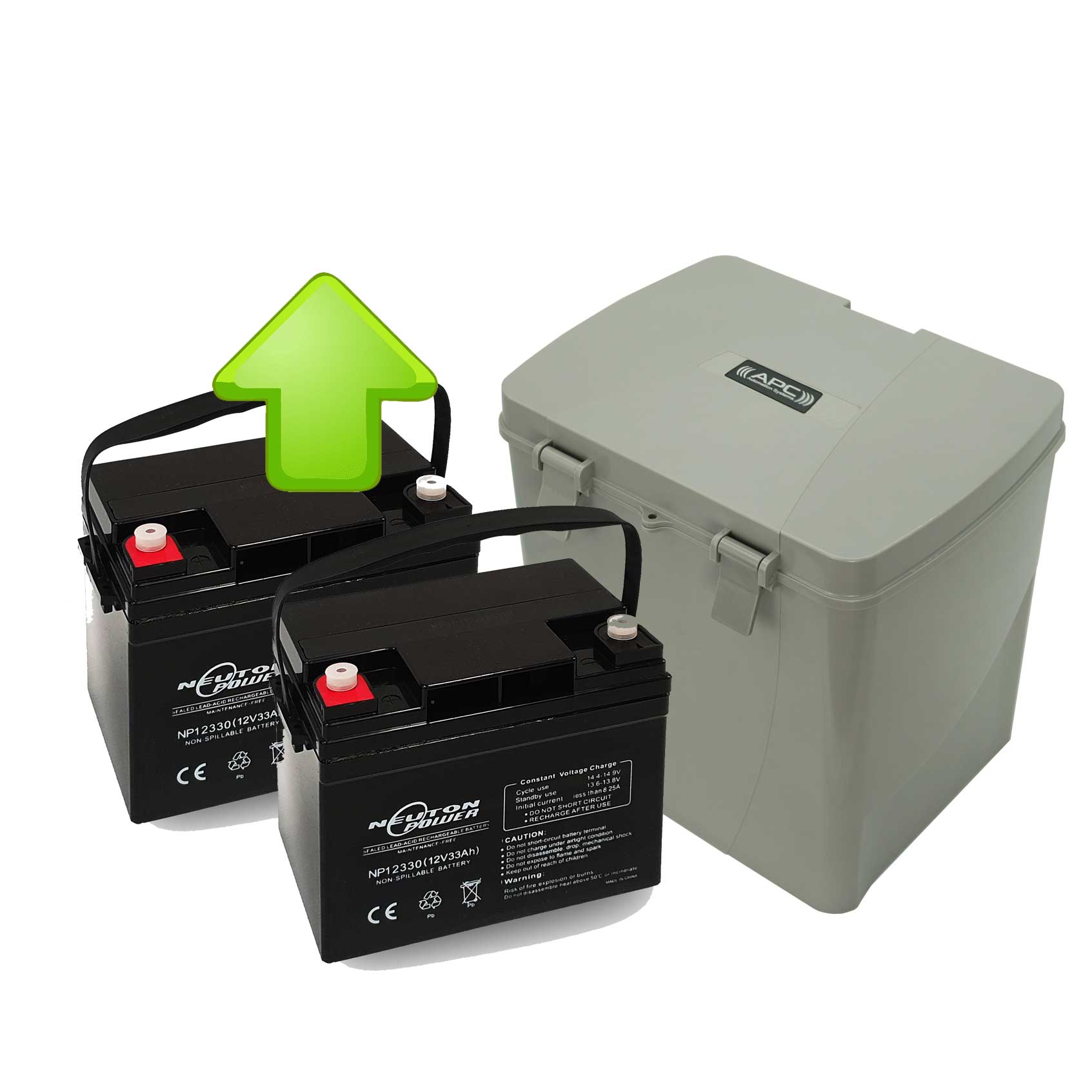 The APC Uno is an articulate all-in-one design allowing for the clean and secure housing of the APC Sun Power Solar Regulator and multiple batteries. The housing can fit up to 2x 9aH batteries (Uno Box), 2x 17aH batteries(Uno Large Box), and 1x 33aH battery(Uno Large Box). For 33aH batteries, a Master Uno Large Box and Slave Uno Large Box are required; see details below.