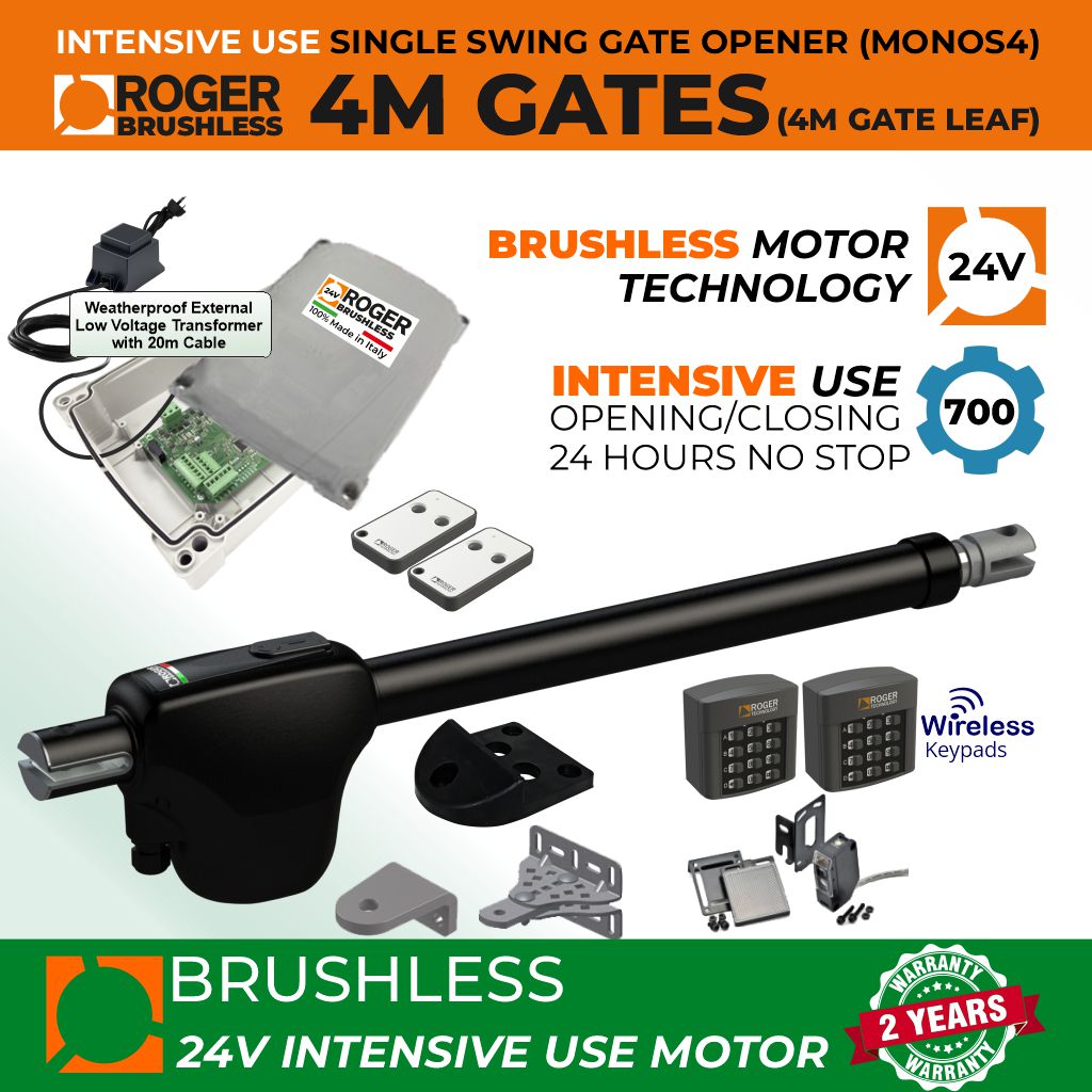 Roger Technology 24V Super Intensive Use Brushless Gate Automotion LV System | Max. 4m/450kg Opening Driveway Gate Leaf