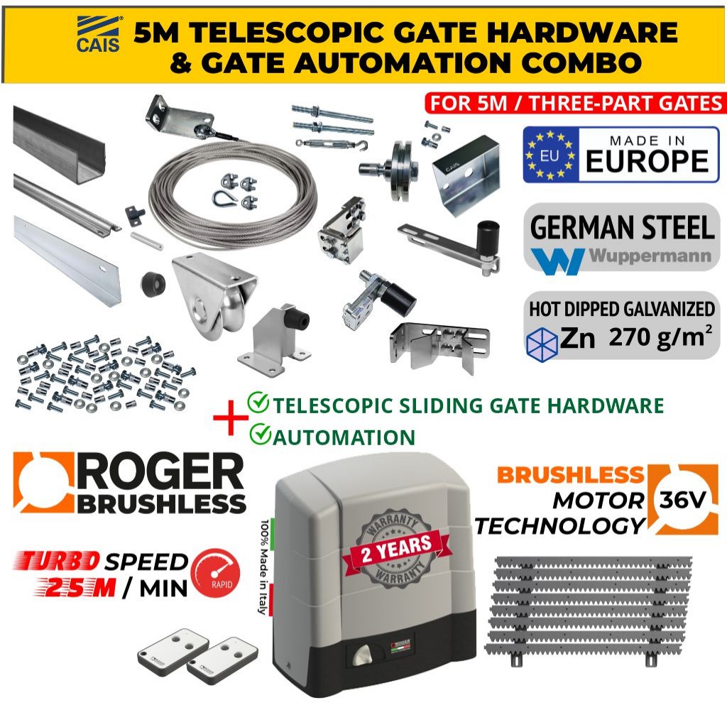 5m Complete Telescopic Sliding Gate Installation Kit for Three-Part Driveway Sliding Gate (THREE-Part Sliding Gate Hardware Set) CAIS SHORTBACK THE 5.0