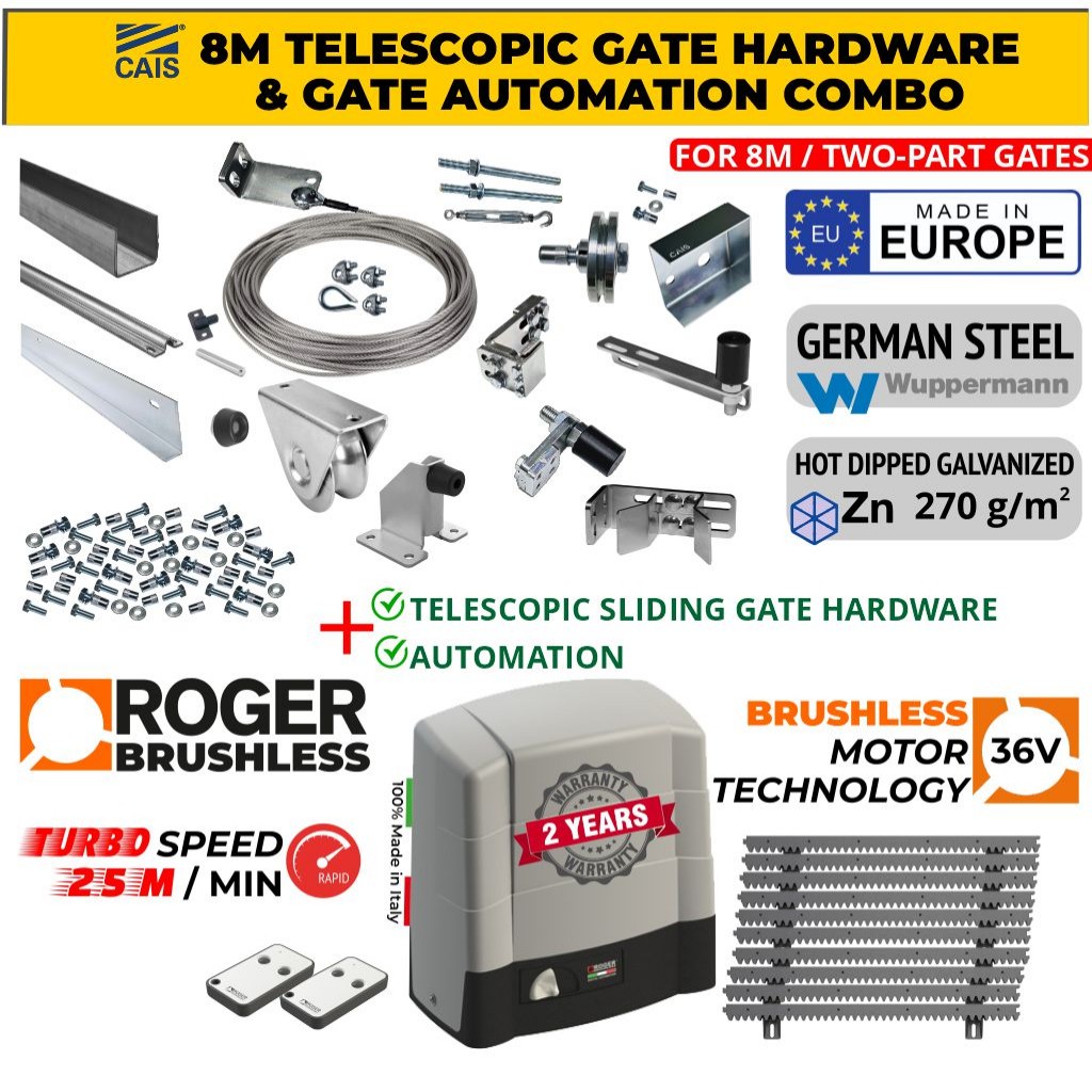 8m Complete Telescopic Sliding Gate Installation Kit for Two-Part Driveway Sliding Gate (TWO-Part Sliding Gate Hardware Set) CAIS SHORTBACK DUE 8.0