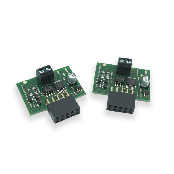 The Syncro modules are connected as a pair, one into each sliding motor of a bi-parting installation. They are interconnected to one another using twisted pairs. This enables a synchronised simultaneous operation of the sliding gates using only one set of accessories connected to either of the two units.