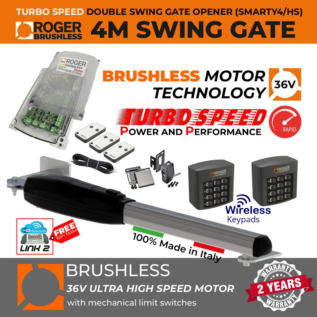 36V Brushless Ultra High-Speed Swing Gate Opener | Max. 4M or 400KG Gate Leaf | 100% Italian Made | Super Intensive Use