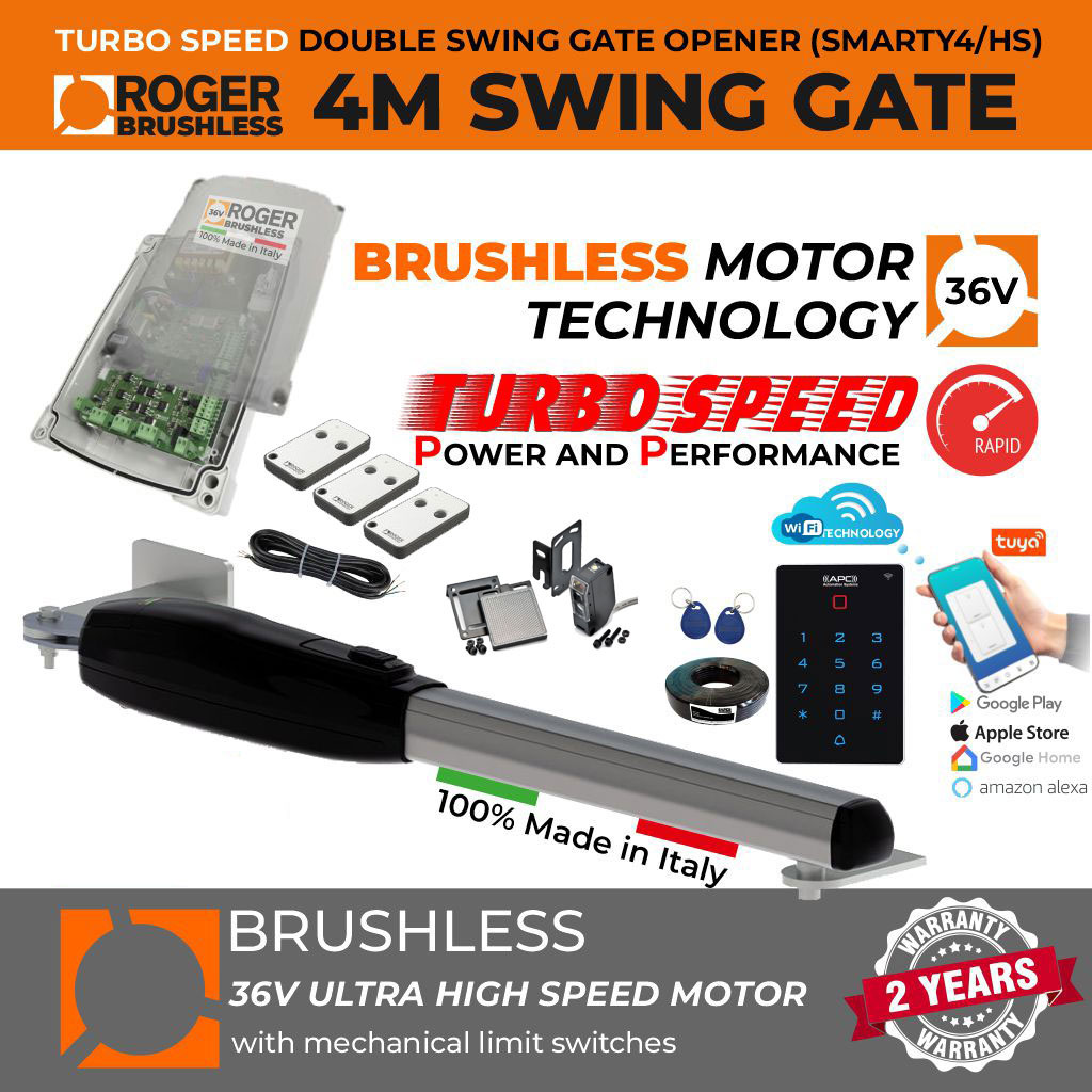 36V Brushless Ultra High-Speed Swing Gate Opener | Max. 4M or 400KG Gate Leaf | 100% Italian Made | Super Intensive Use