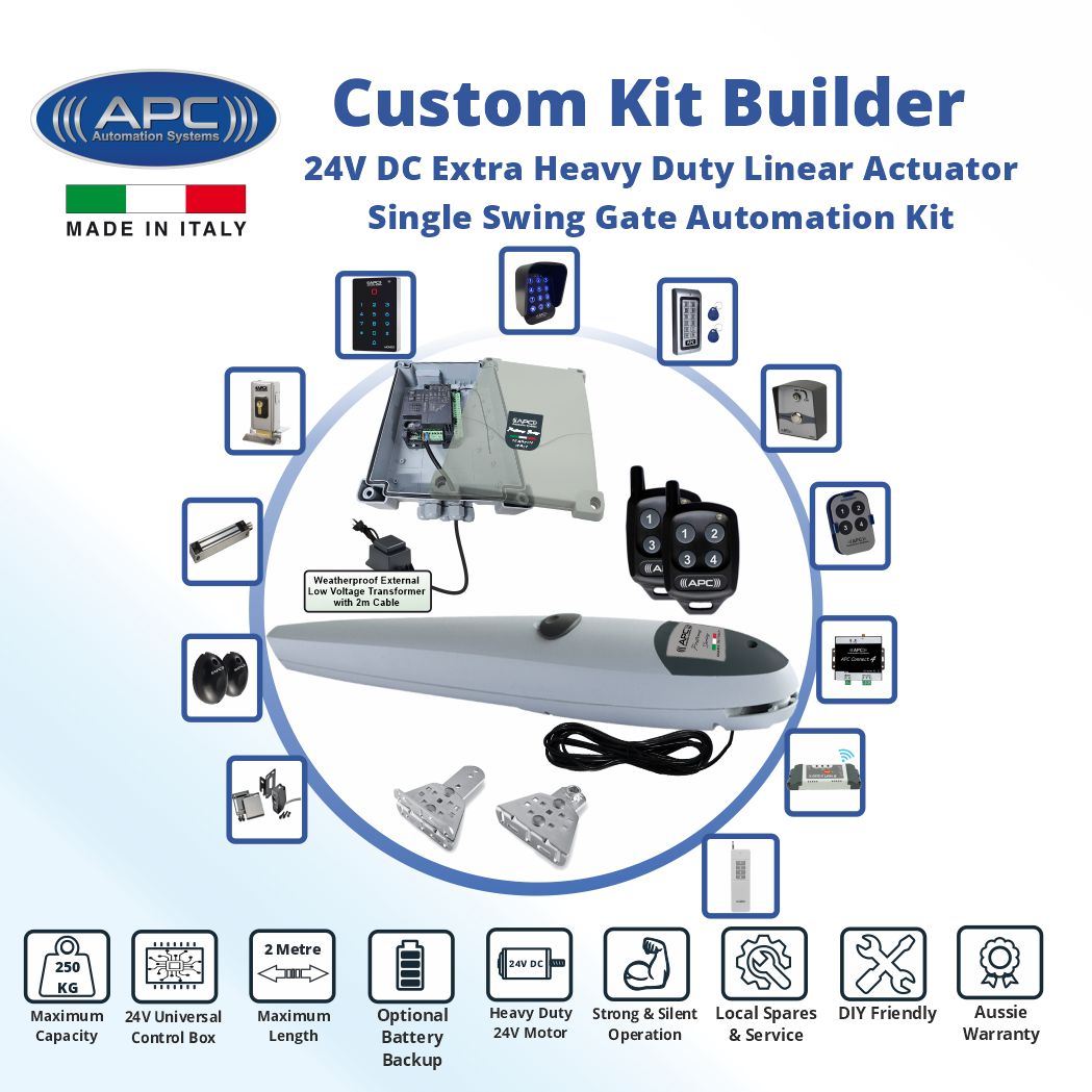 - Always comes with a weatherproof external transformer for easy install and low voltage connections with the gate opener kits.