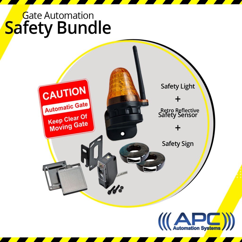 Includes Retro Reflective sensor, Safety Light with Antenna, Gate sign & Cabling