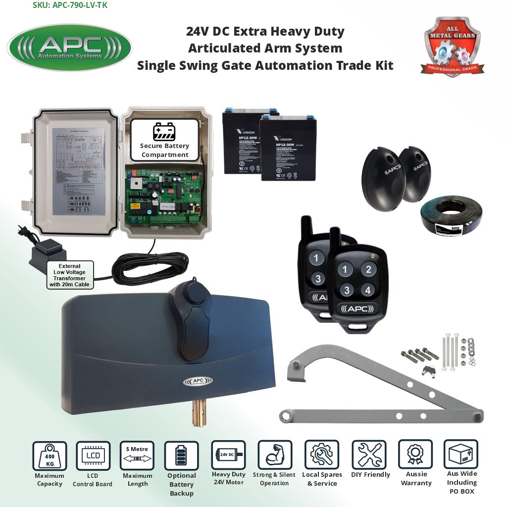 Supplied with the automation kit the back up battery system will allow for continued use of the gate system for up to three days of regular use and will automatically recharge upon power restoration. Whilst the system is powered it will continue to float charge to keep the batteries topped up ready for use.