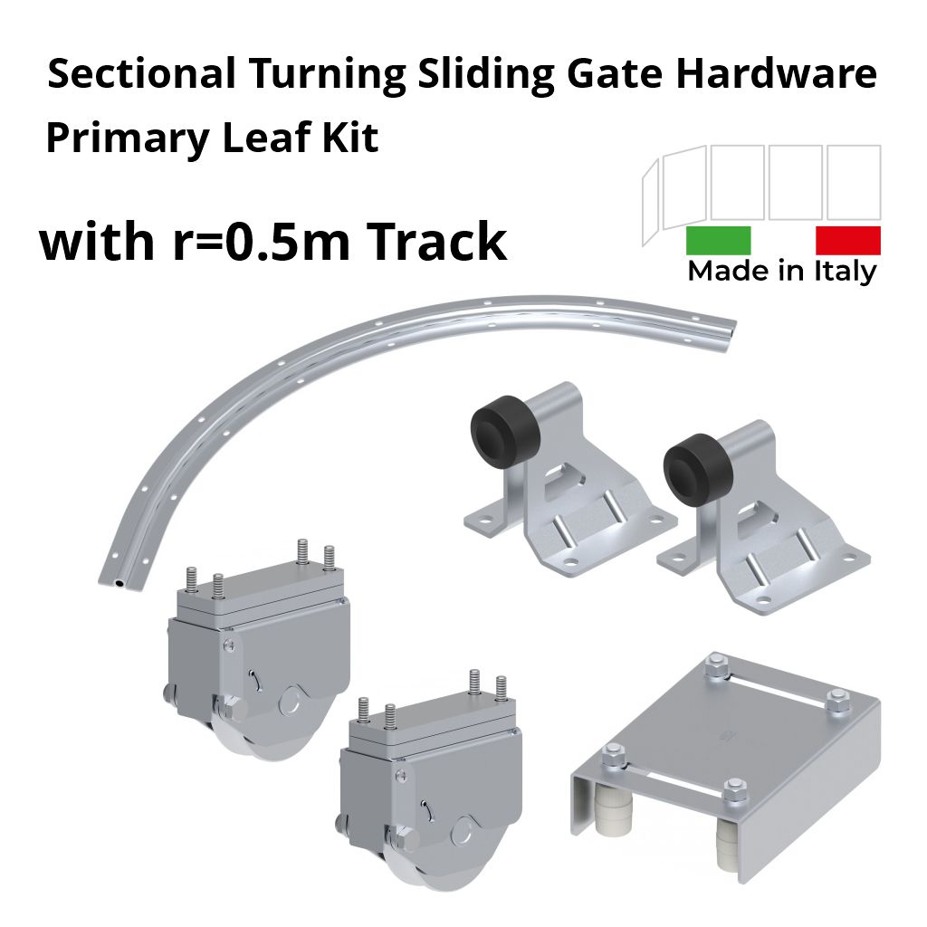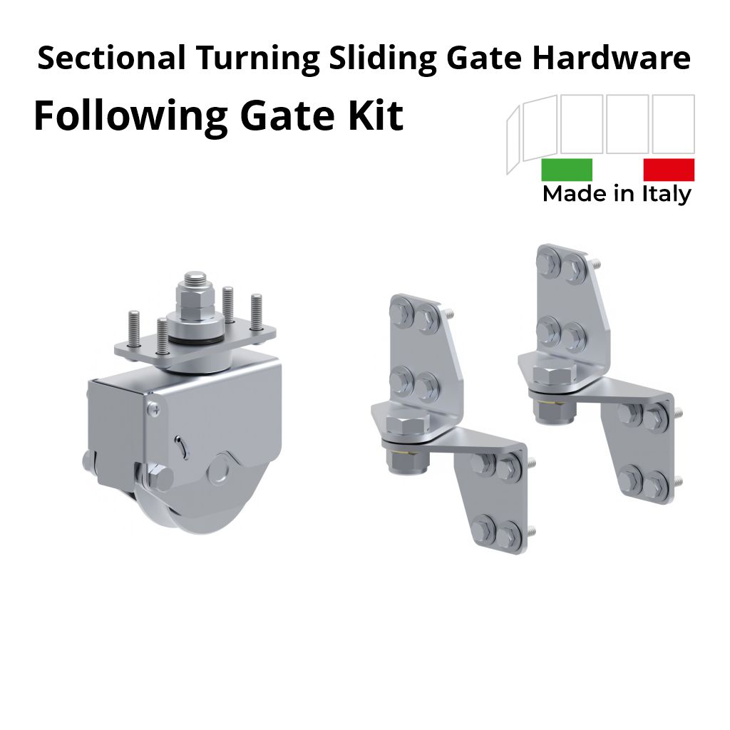 Provide convenience, security, durability, and an aesthetically pleasing solution for your property's entrance. Sectional turning sliding gate hardware kits (Gate-Panels Around The Corner Design) are made in Italy with high-quality, heavily galvanized steel.