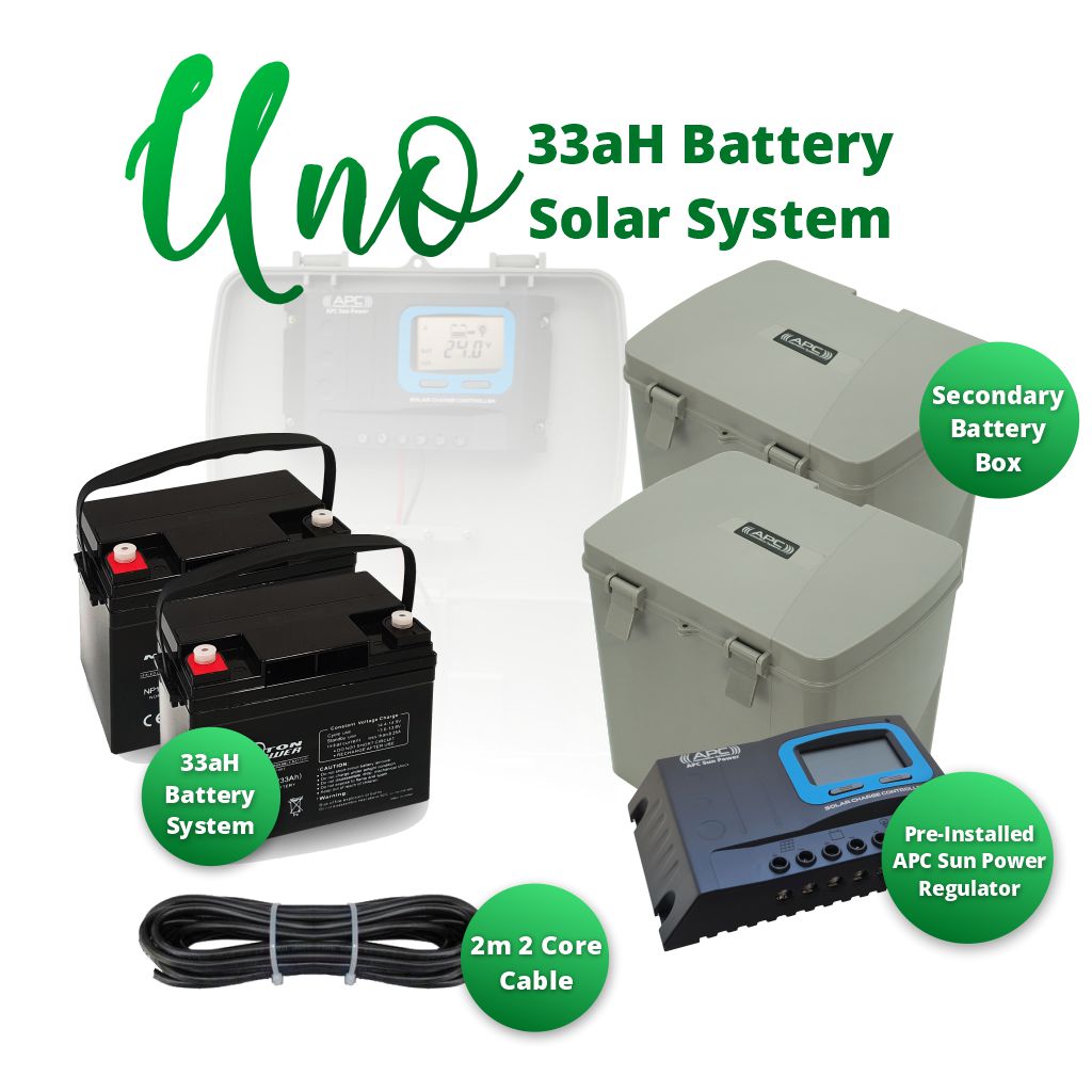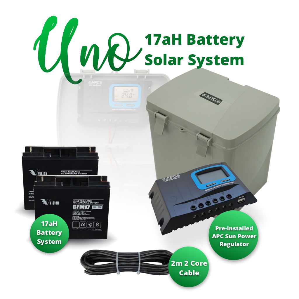 Supplied with the automation kit the 24V 17aH battery system will allow for continued use of the gate system wether in day or night. The system can operate for up to one week of regular usage of 30 cycles per day without any charge from the solar panel (winter months/wet season) and will automatically recharge from sun light. When the system batteries are fully charged it will continue to float charge to keep the batteries topped up ready for use. In a case of extended use requirments or higher duty there are upgrade options to 33aH battery systems available.