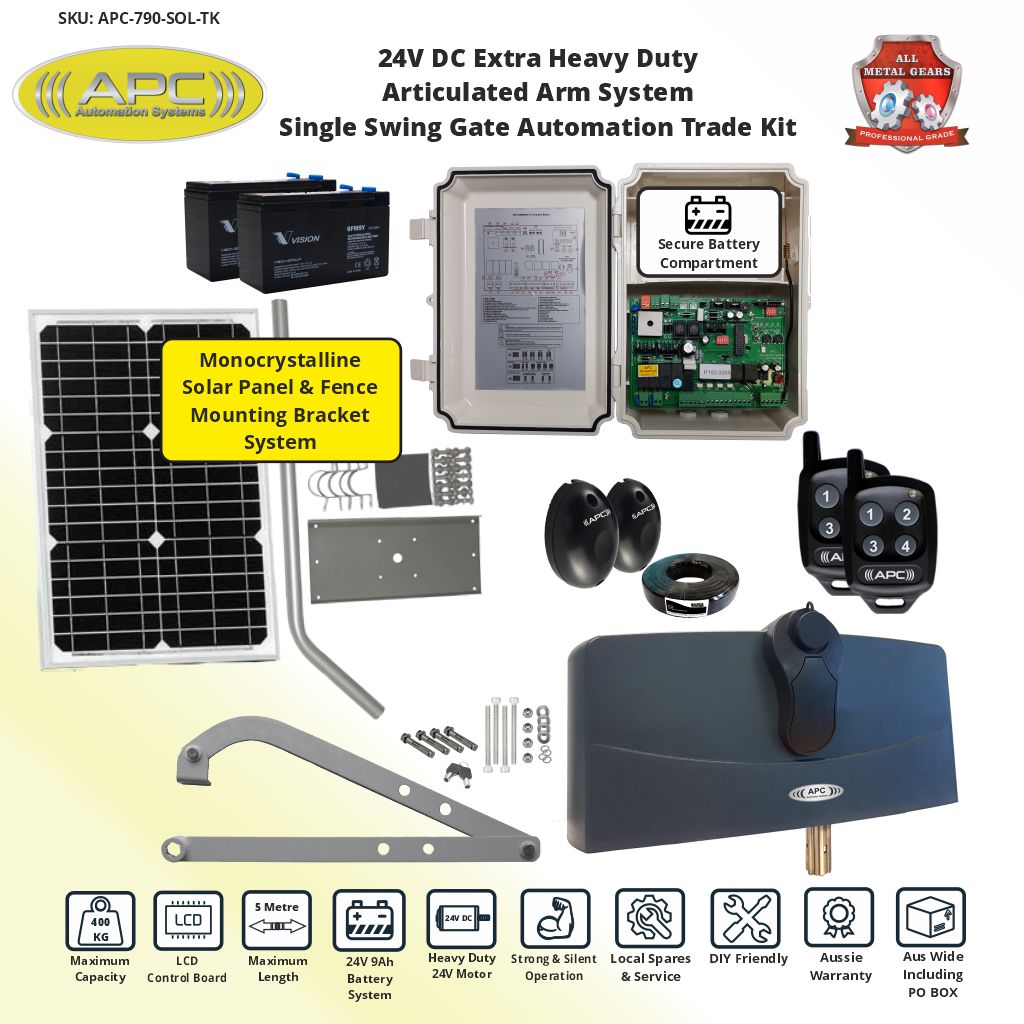 Solar Electric Gate Opener 24V System, 4.5 Meter/300KG, up to 110° Opening with Limit Switches