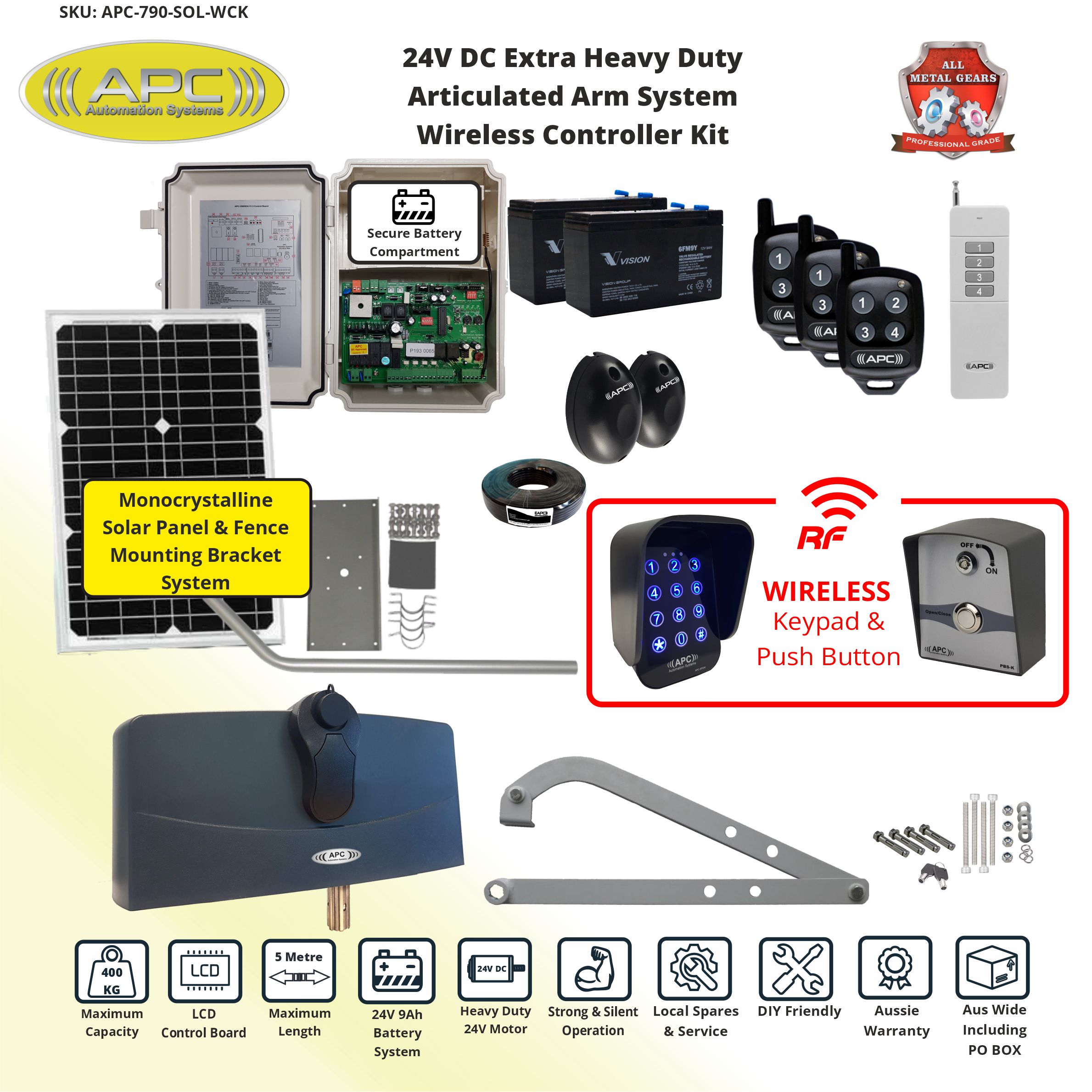 Solar Electric Gate Opener 24V System, 4.5 Meter/300KG, up to 110° Opening with Limit Switches