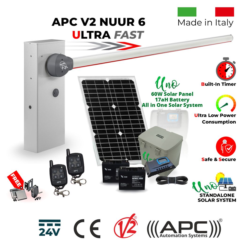 Boom Barrier / Boom Gate / Parking Barrier, Car Parking Access Control APC V2 NUUR6, Universal Boom Gate Ultra High-Speed 24V DC, 6 Meter Barrier Made in Italy